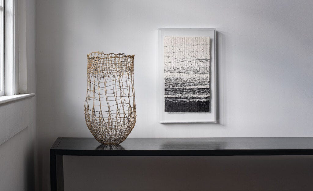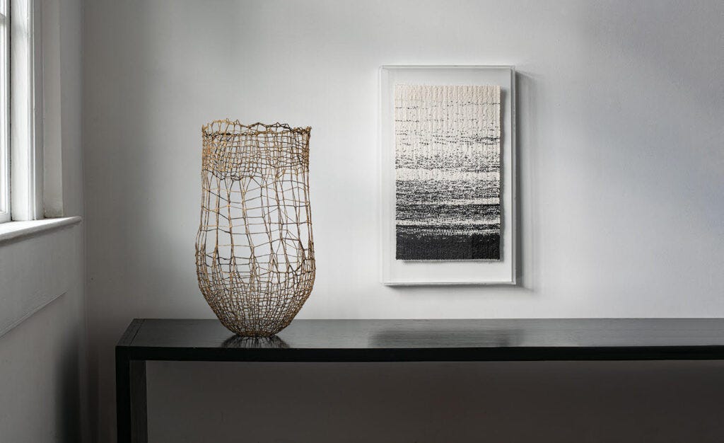 The similarity between Scandinavian and Japanese aesthetics is easily recognized. It is not only a distinctive simplicity and a respect to craftsmanship, to nature, and to materials, but also historic interchange between the two cultures, which is rooted in the late 19th century. Look, for example, at the iconic Hotel Okura, designed by Toshiro Taniguchi in 1962, and considered one of the world’s most beloved modernist hotels. It has famously hosted every American president since Richard Nixon, and has been mistakenly thought to be furnished with Scandinavian pieces. The furnishings indeed look Nordic, but they were designed in Japan. Misunderstandings such as this are commonplace. The cross influences between the Nordic and Japanese cultures, as seen in contemporary fiber art, are at the core of the new exhibition, ‘Japandi: Shared Aesthetics and Influences,’ on view at browngrotta arts in Wilton, CT.