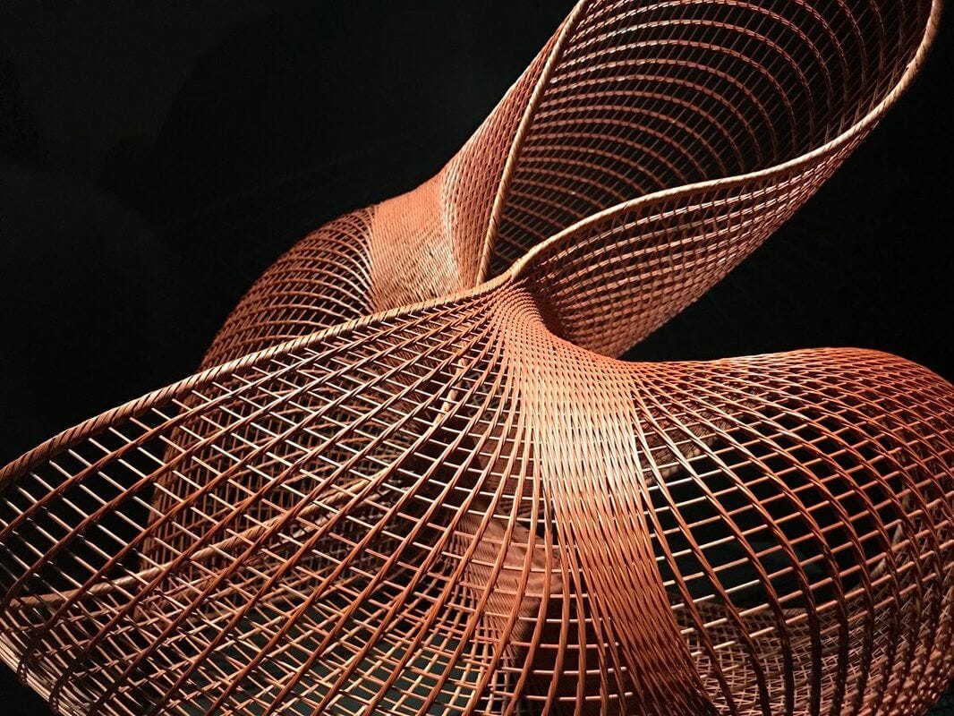 I have to thank my friend Marianne Livnat, a passionate crafts enthusiast, collector, and patron for recommending the new exhibition ‘Japanese Bamboo Art: The Abbey Collection,’ at the Met. Because I did not find the image selected for its promotion intriguing enough to make my way to the exhibition, which I ultimately found surprisingly interesting, inspiring, and enjoyable. I have to start from the fact that I love bamboo, and that one of the greatest place to see bamboo is Japan, simply because is plays a central role in Japanese arts and culture (below, my visit to the famed Arashiyama Bamboo Grove in Kyoto). Bamboo is a sustainable material that has enjoyed a great revival and interest in recent years, but this show, brings the best, the most complex of Japanese basketry, focusing on bamboo as a form of art. The pieces have all been crafted between the 19th century to the present, because it is since the 19th century that bamboo has been recognized as a form of art in Japan. At the entrance to the show, a site specific enormous sculpture created by master craftsman Tanabe Chikuunsay IV, which is a great way of introduction to the extraordinary potential of the material to create artistic works and to its warm and humane quality.