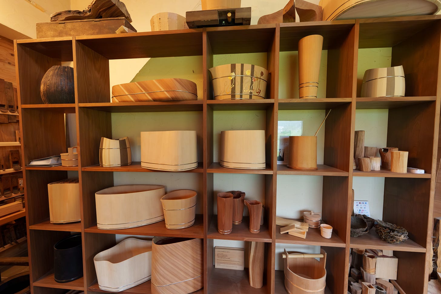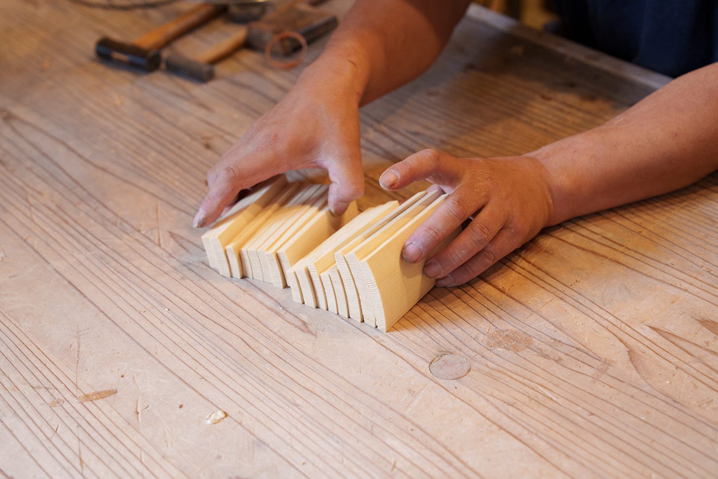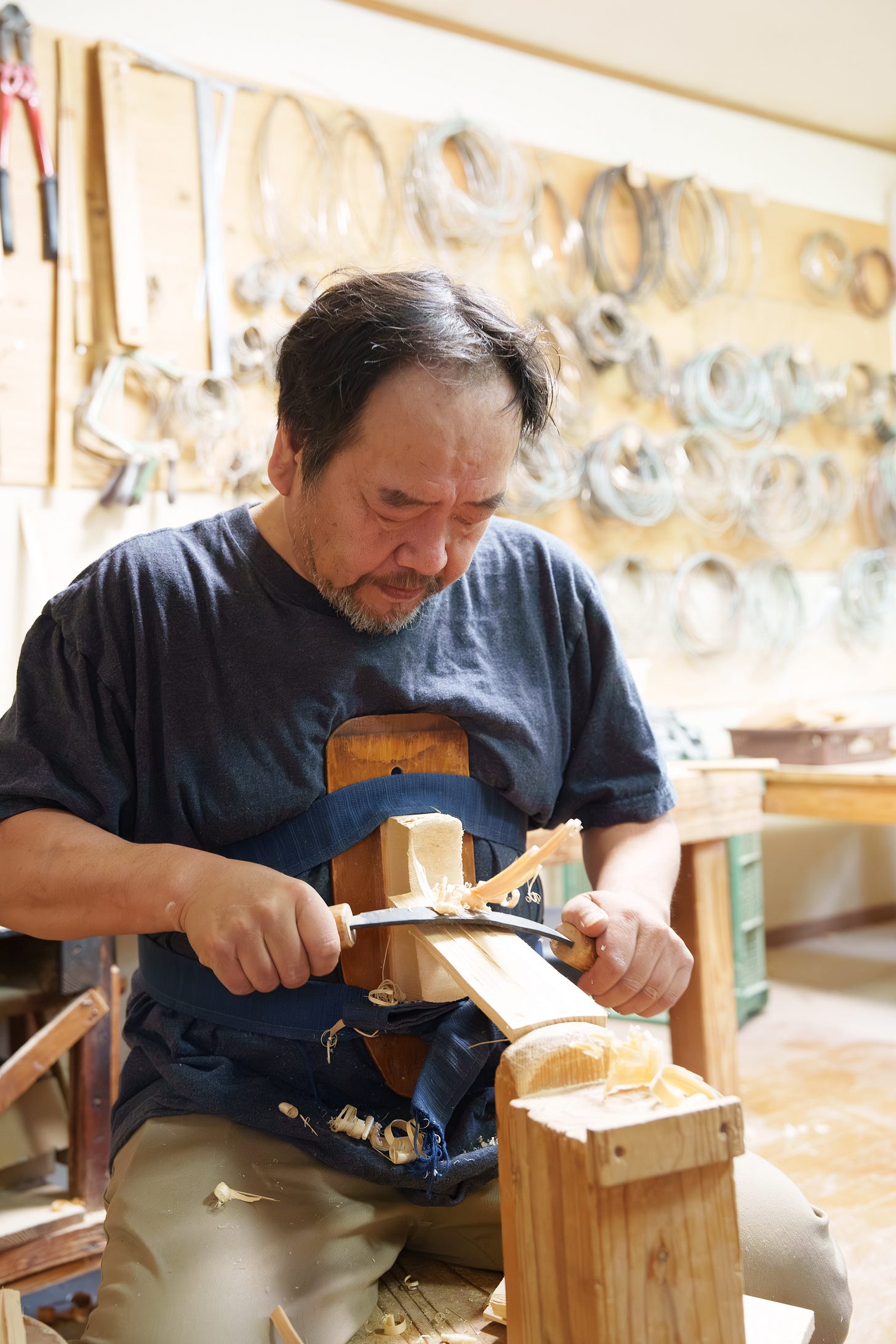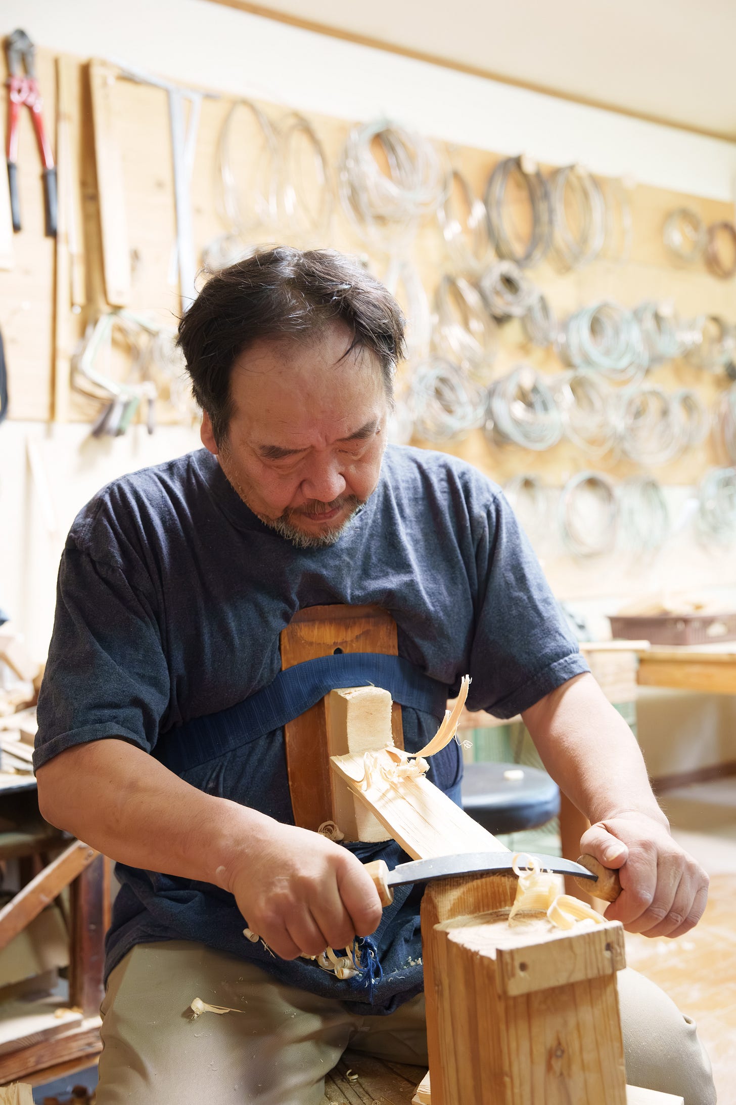 Born and raised in Kyoto, Shuji’s grandfather began making Oke when it was essential for daily life, found in every household in Japan. He learned the craft as a young apprentice, but with the growth of industrialization following the Second World War, and Oke being mass-produced in plastic and other industrial materials, the wooden, handmade objects had lost their traditional place in the Japanese household, and the heritage had nearly disappeared. His son, Shuji’s father, Seiji Nakagawa, a second-generation master craftsman, kept the craft alive, thanks to the loyal clientele of the upscale ryokans and hotels in Kyoto. He offered private hot spring baths equipped with Oke to his guests, allowing them to experience authenticity when visiting the ancient town. He was designated a Living National Treasure for preserving the vanishing craft.