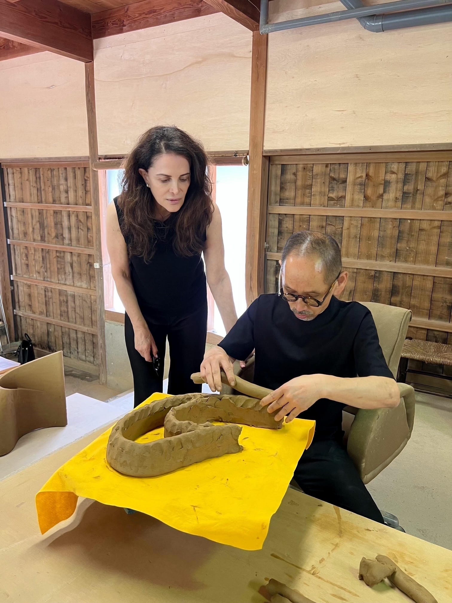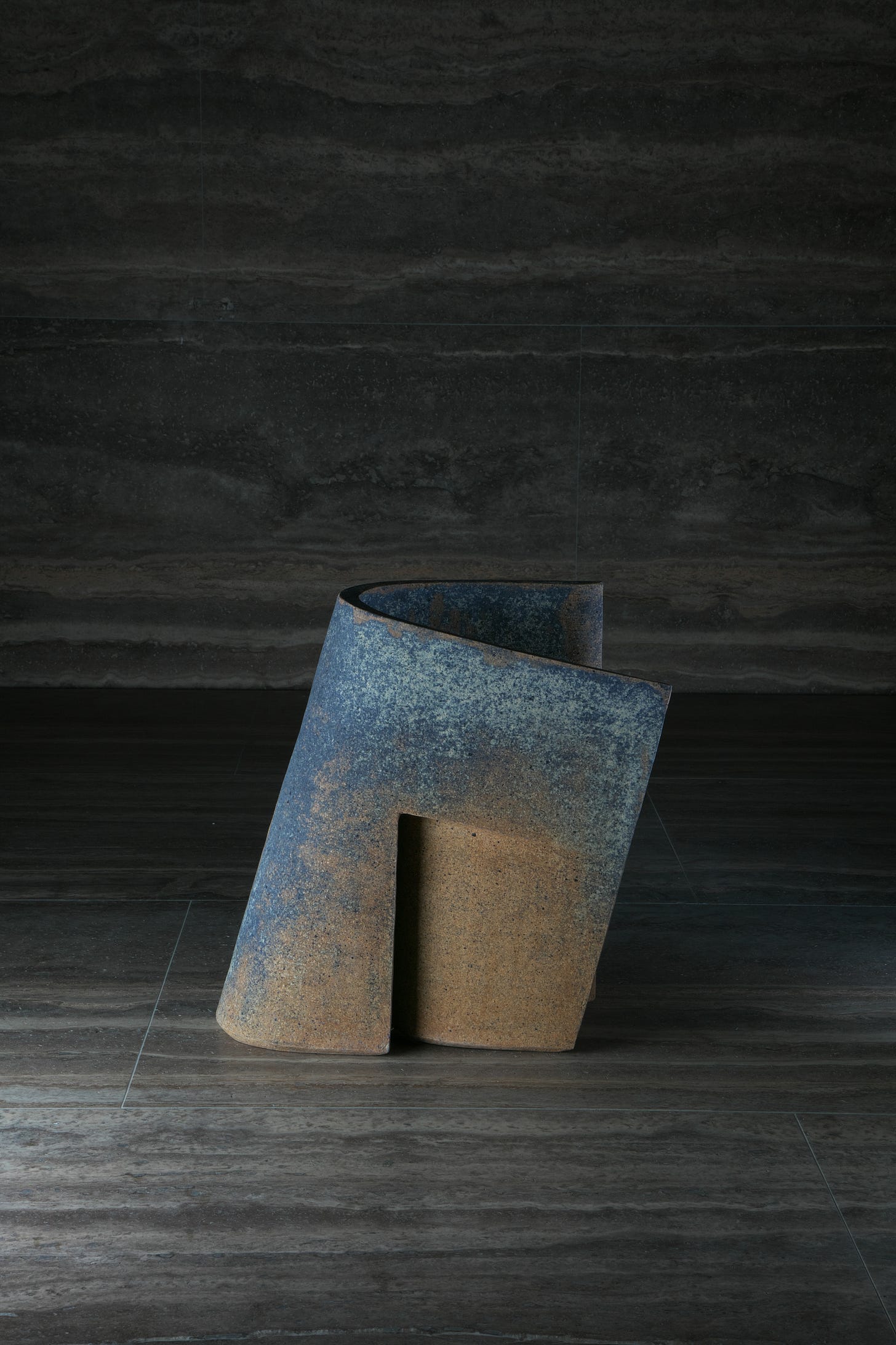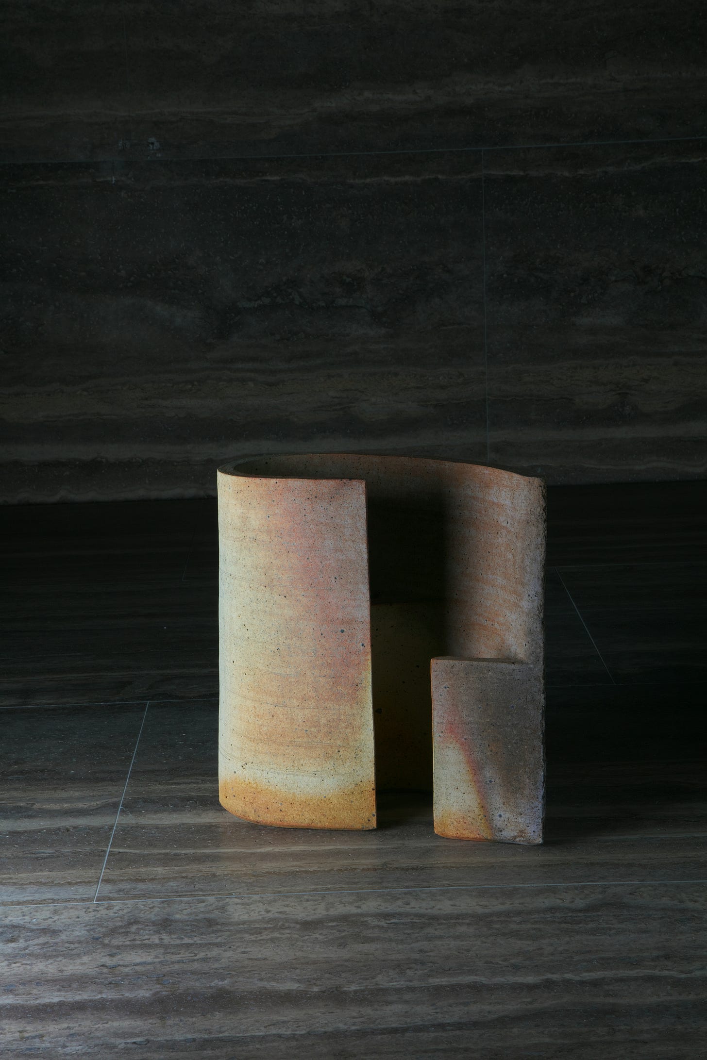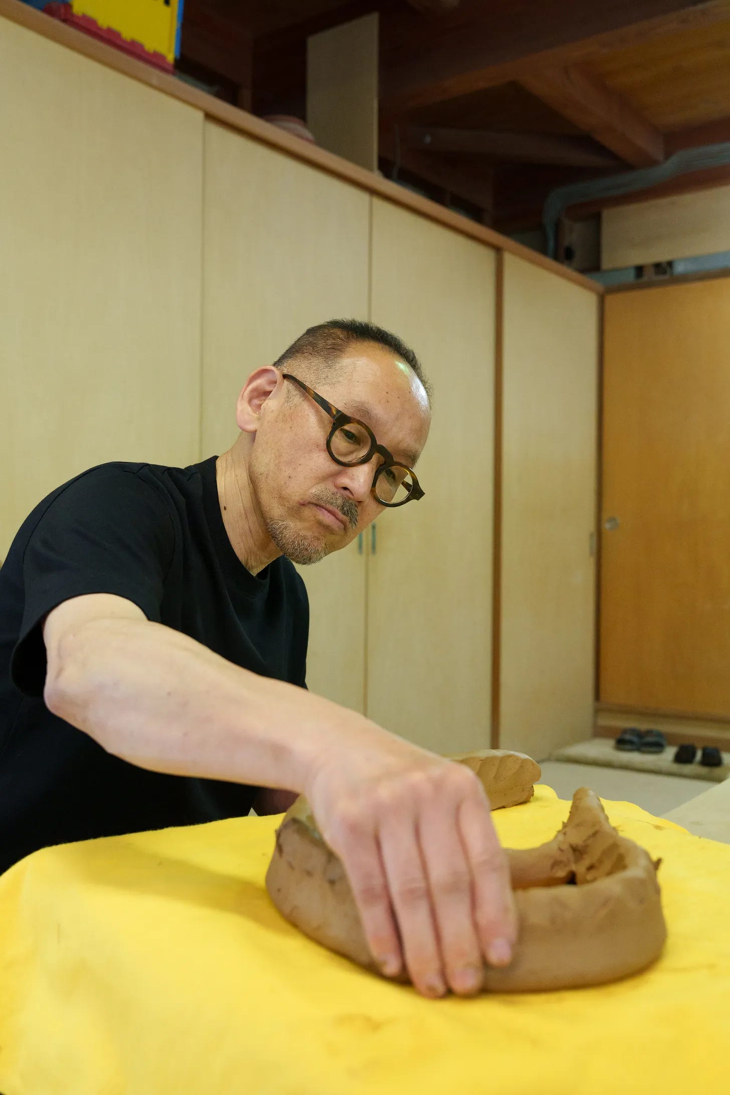 When I was in Izumo on the western coast of Japan during the summer, I visited the studio and home of Japanese ceramicist Ken Mihara. I was fortunate enough to witness him working on his next solo exhibition at the Tokyo-based gallery named A Lighthouse called Kanata. Now that the exhibition is opening, it is possible to see him present his series Kyo (Echoes), which includes the exquisite pieces on which he worked at his studio in the summer. The new forms, which capture the landscape of his hometown, embody his signature while adding new dimensions and layers to his existing oeuvre. Mihara, one of the leading voices in contemporary Japanese ceramics today, has forged his language by hand-building his abstract sculpturesin coils, blending them together into surprising, somewhat architectural forms, and by allowing the clay itself to speak without adding glazes or any other coating.
