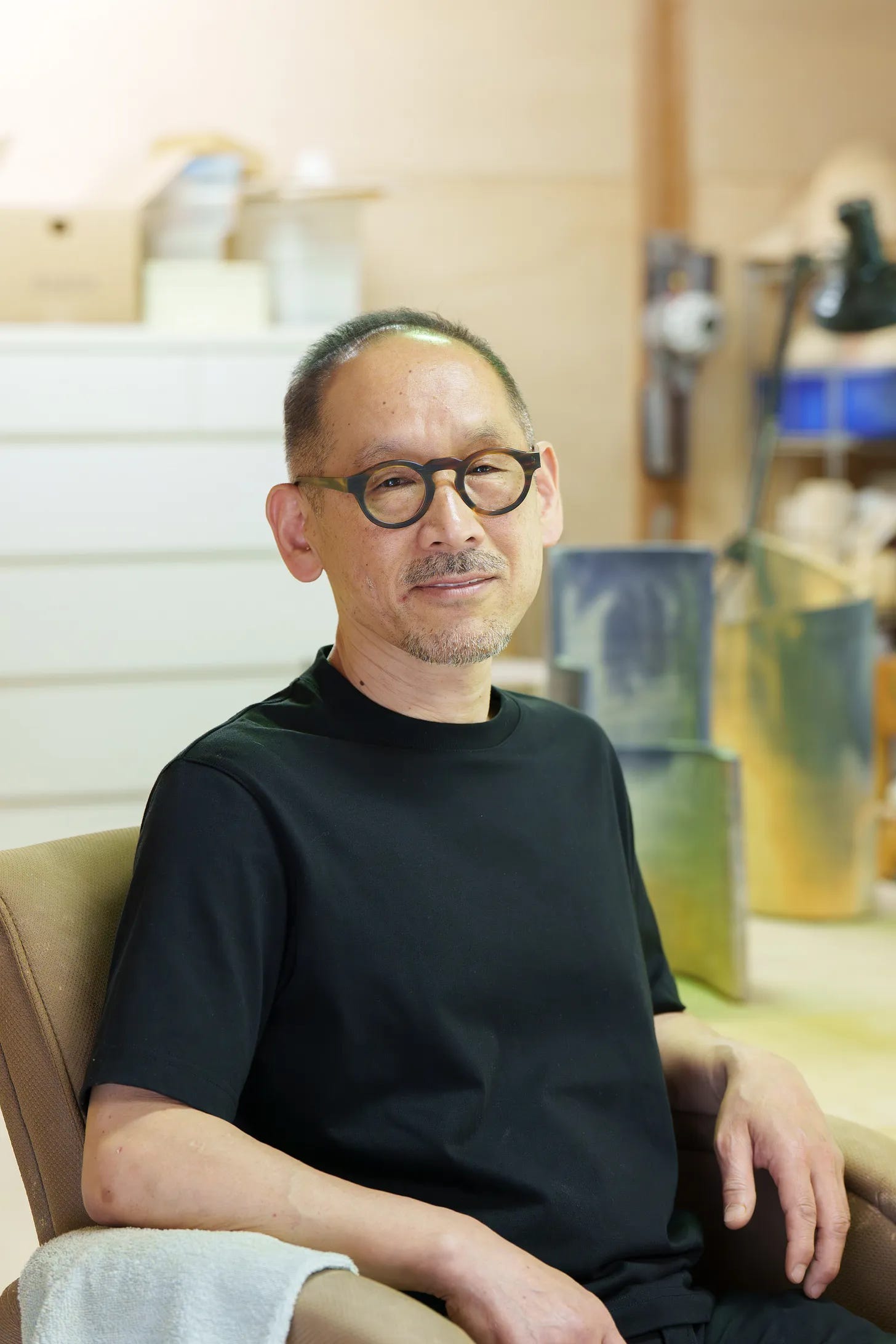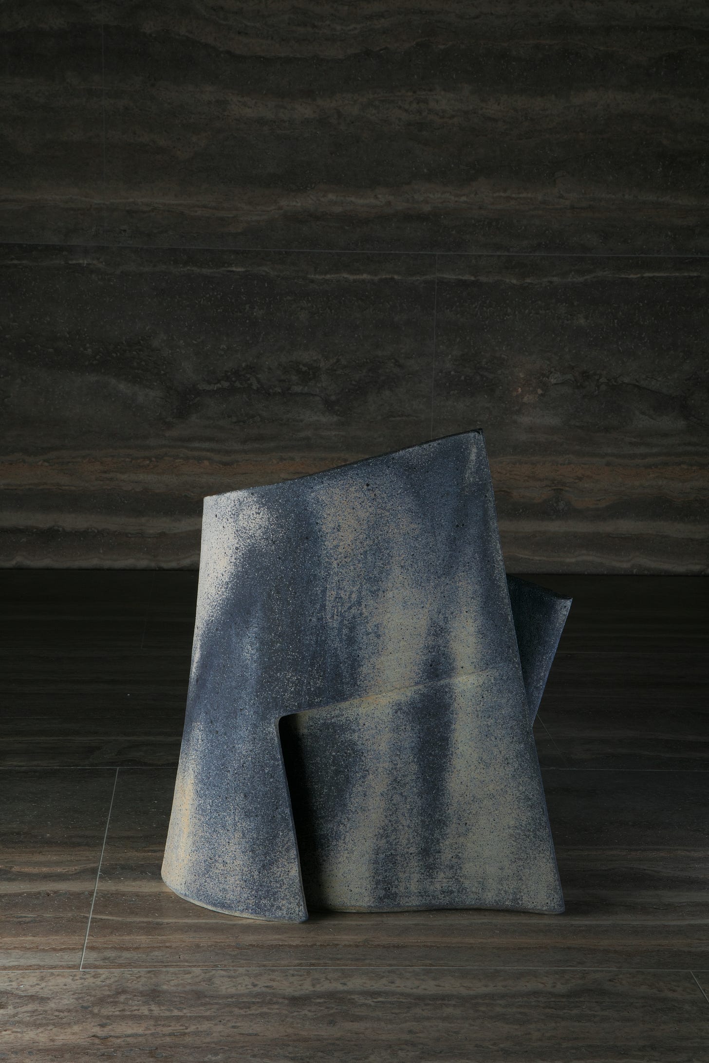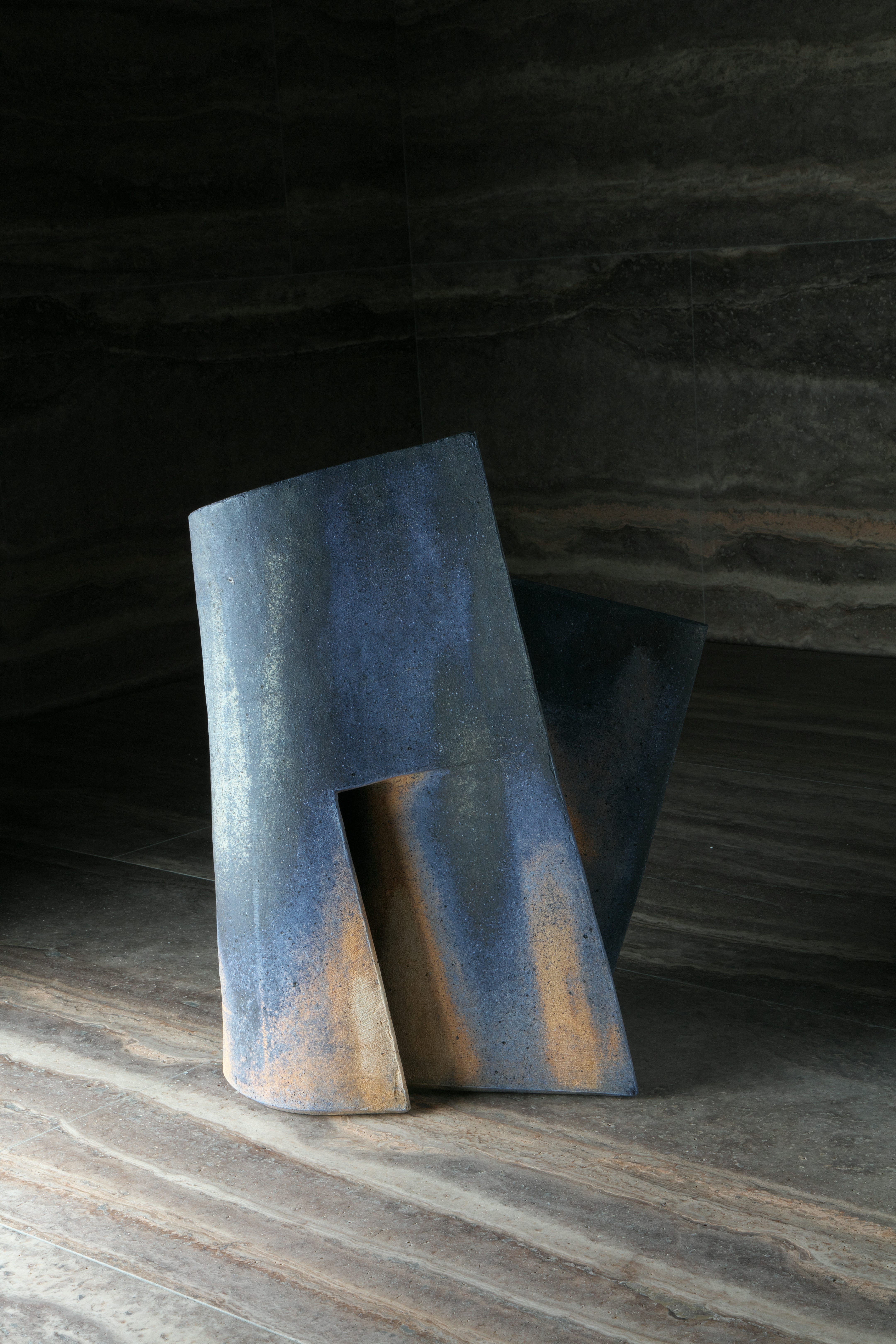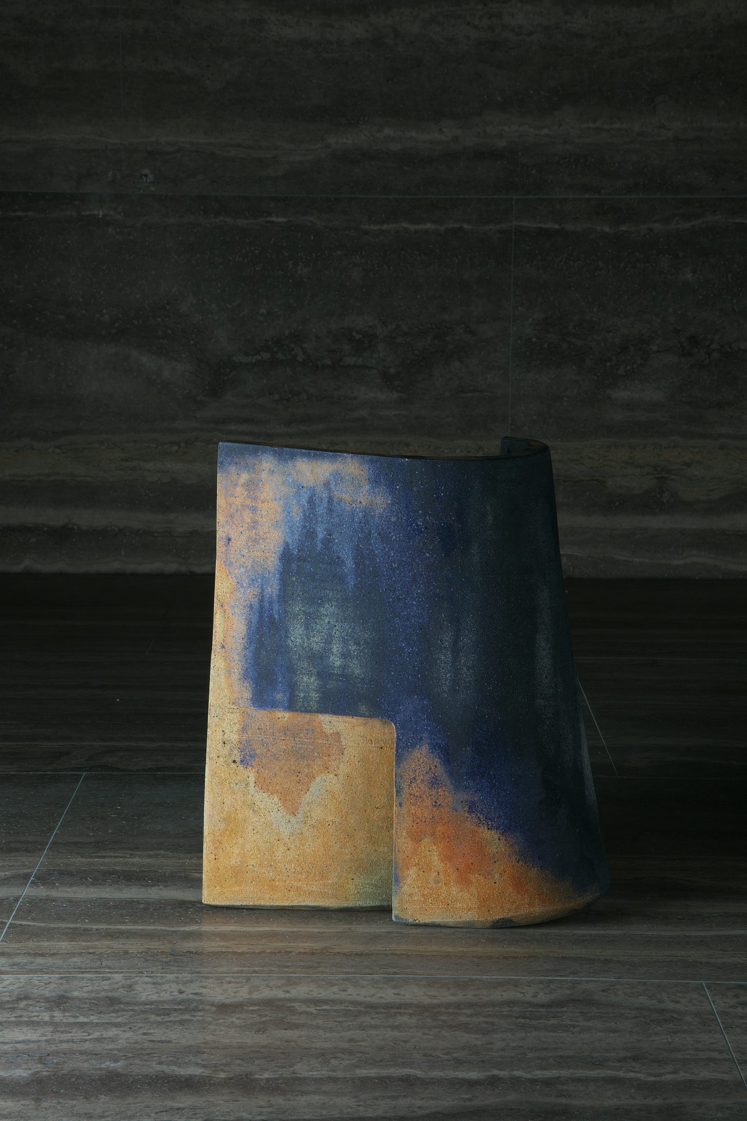 When I was in Izumo on the western coast of Japan during the summer, I visited the studio and home of Japanese ceramicist Ken Mihara. I was fortunate enough to witness him working on his next solo exhibition at the Tokyo-based gallery named A Lighthouse called Kanata. Now that the exhibition is opening, it is possible to see him present his series Kyo (Echoes), which includes the exquisite pieces on which he worked at his studio in the summer. The new forms, which capture the landscape of his hometown, embody his signature while adding new dimensions and layers to his existing oeuvre. Mihara, one of the leading voices in contemporary Japanese ceramics today, has forged his language by hand-building his abstract sculpturesin coils, blending them together into surprising, somewhat architectural forms, and by allowing the clay itself to speak without adding glazes or any other coating.