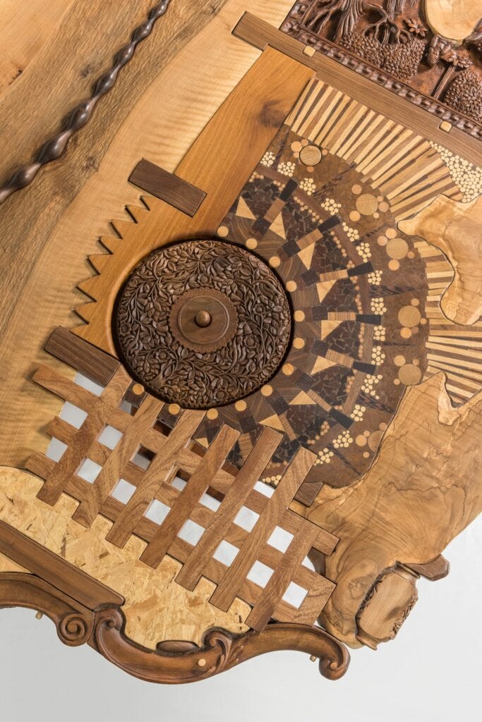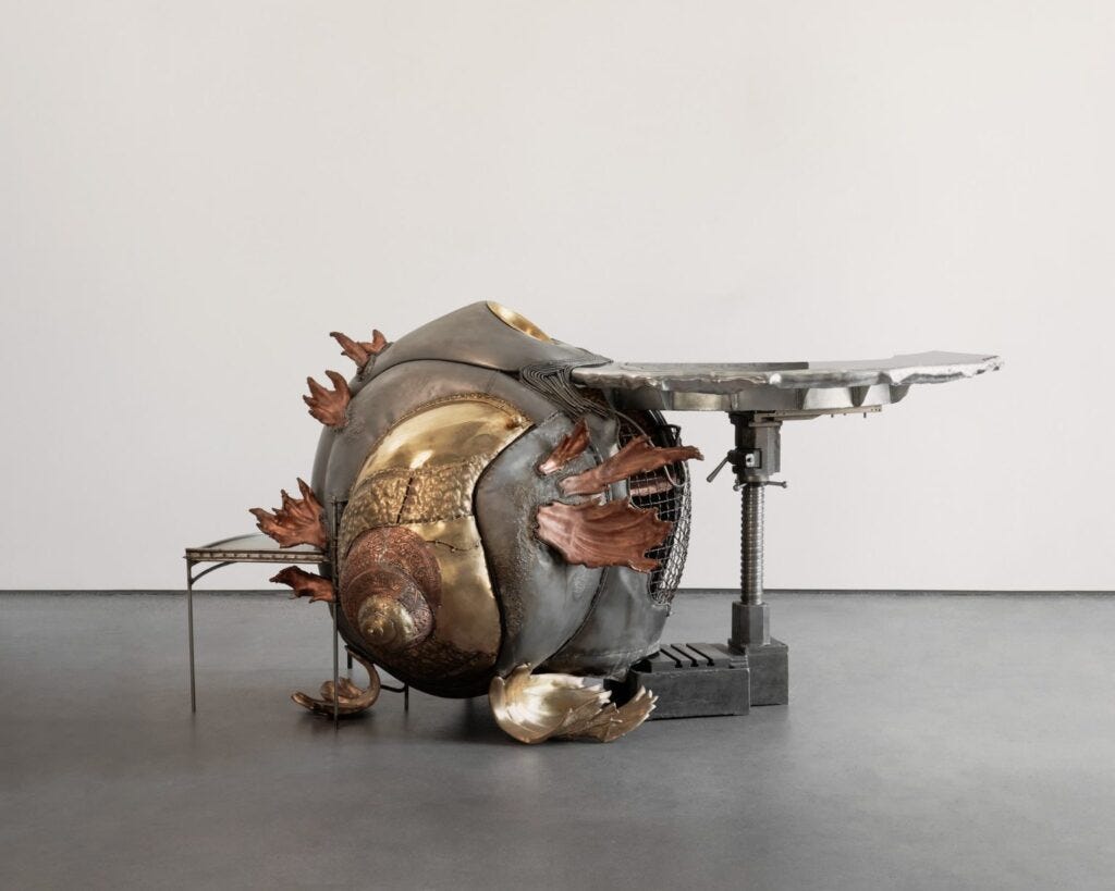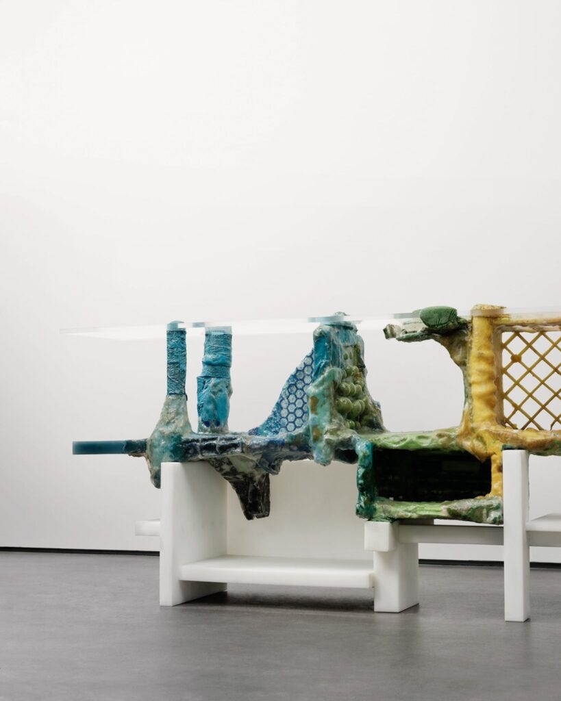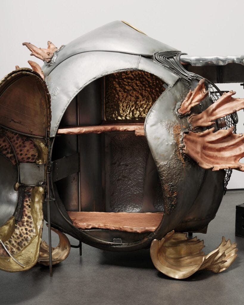 While the new work presented in the current show is as immediately identifiable as his, it is still clear he was taking on a new direction. Unlike his previous work where Lambridis built compositions of materials—integrating plastic with wood, with stone, with metal—here, he has switched to a mono-material approach while allowing himself to dig deeper into each material to better giving an expression to his materilas. The objects look like tapestries of materials, ornaments, and elements, making it hard to distinguish between the ready-made and the crafted. This is intentional because the artist wants to pose questions to the viewer. Each of the nine objects, whether in wood, metal, minerals, or plastic, is an entire landscape that can stand on its own. It is this tension between the old and the new, between the made and the crafted, that stands at their core. Ultimately, Lambridis wants to see people loving and enjoying his objects, living with them forever. All images courtesty Carpenters Workshop Gallery.