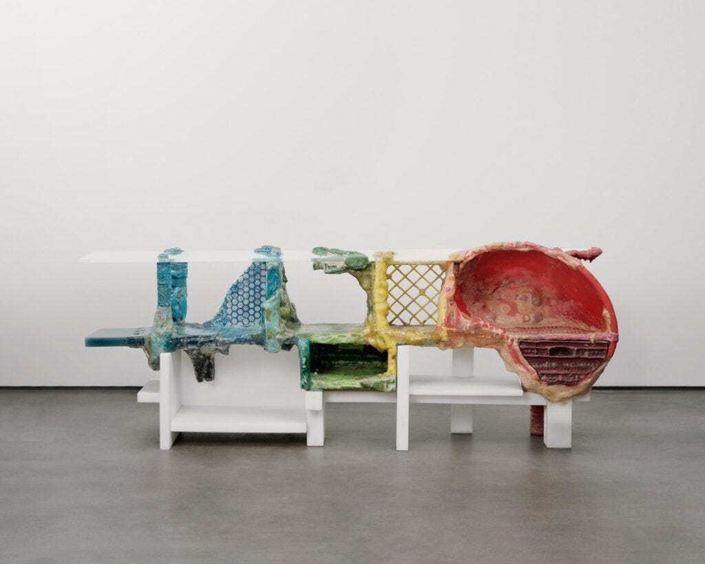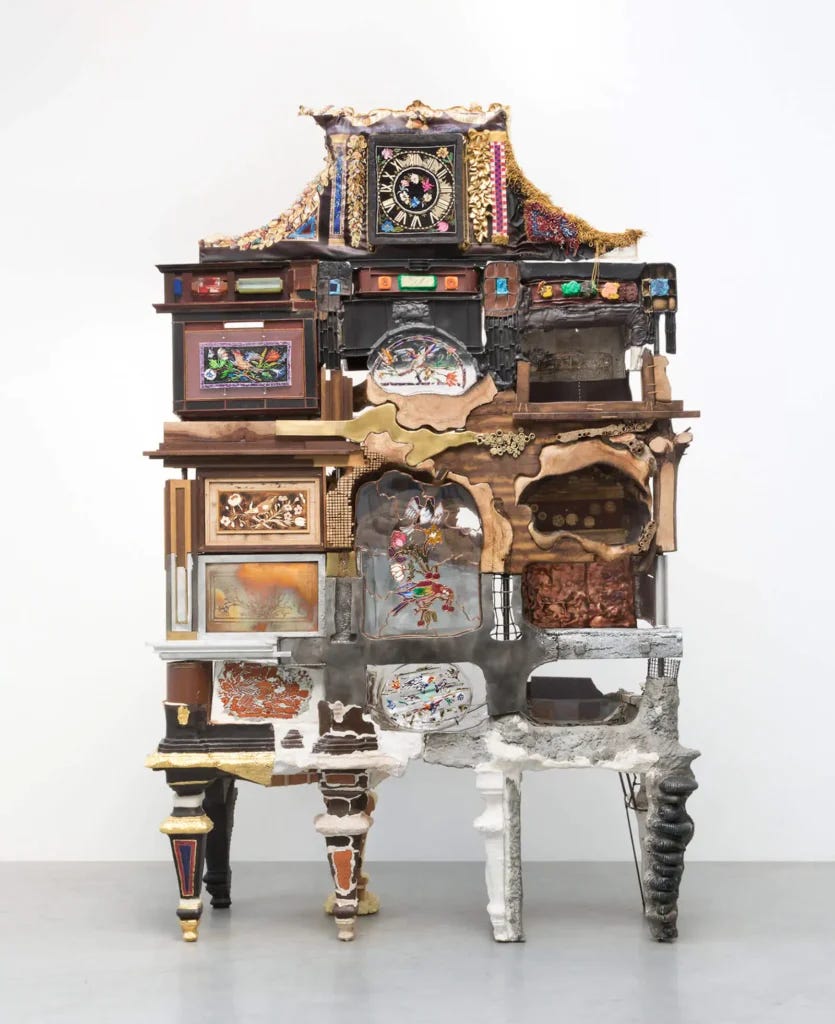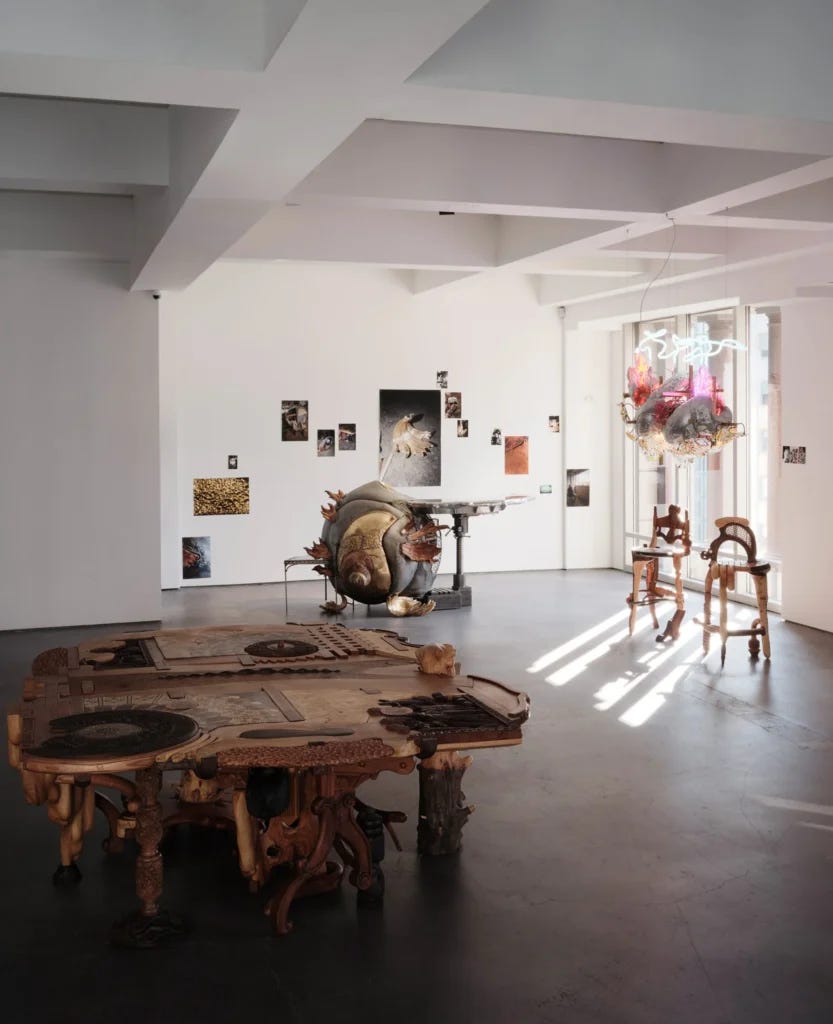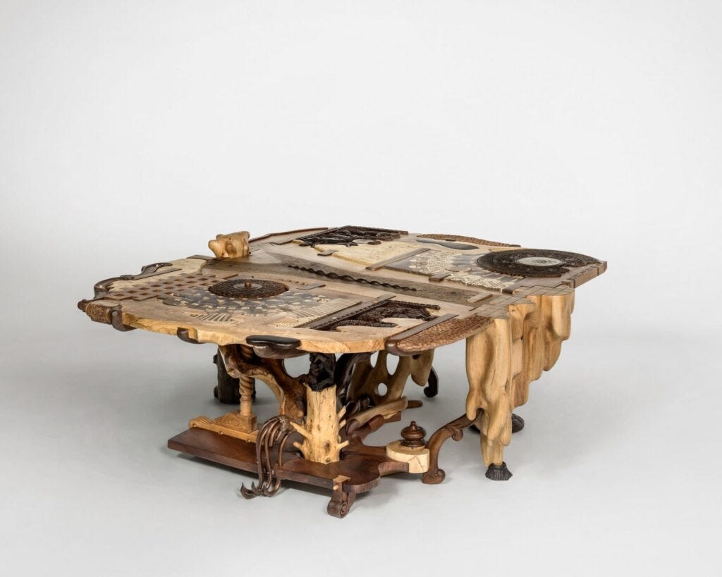 While the new work presented in the current show is as immediately identifiable as his, it is still clear he was taking on a new direction. Unlike his previous work where Lambridis built compositions of materials—integrating plastic with wood, with stone, with metal—here, he has switched to a mono-material approach while allowing himself to dig deeper into each material to better giving an expression to his materilas. The objects look like tapestries of materials, ornaments, and elements, making it hard to distinguish between the ready-made and the crafted. This is intentional because the artist wants to pose questions to the viewer. Each of the nine objects, whether in wood, metal, minerals, or plastic, is an entire landscape that can stand on its own. It is this tension between the old and the new, between the made and the crafted, that stands at their core. Ultimately, Lambridis wants to see people loving and enjoying his objects, living with them forever. All images courtesty Carpenters Workshop Gallery.