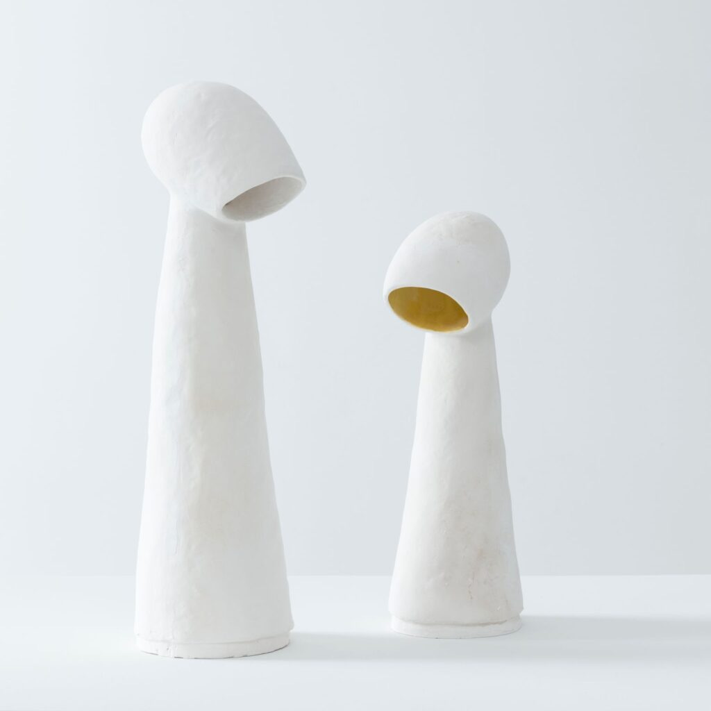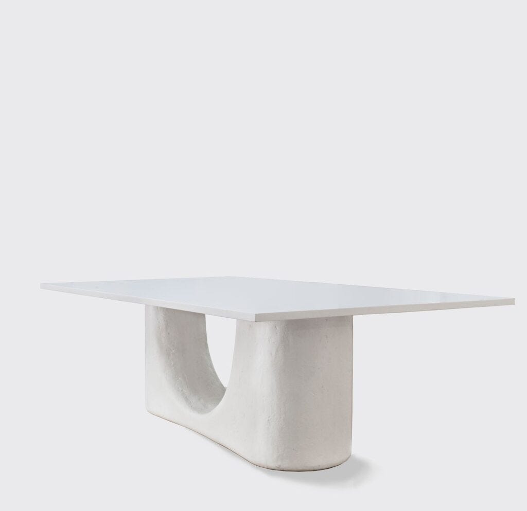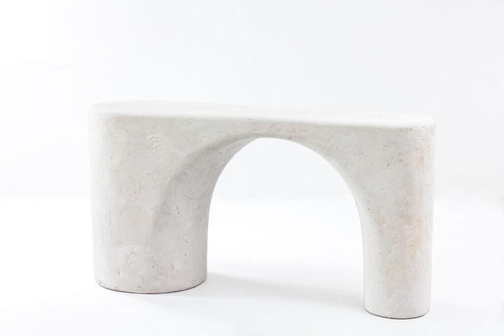 The Santorini Console and Dining Table, inspired by the vaulted arches on the island of Santorini in the Aegean Sea, immediately transports you to this part of the world. The references are clear and are all processed through Mindel’s signature elegance, artistic interiors, love for the perfect finishes, intellectual spaces, and poetic thinking. They bring innumerable layers to the furniture, making it relevant and contemporary. The tall, light sculptures refer to Le Corbusier’s Modular Man, the modernist’s recurring silhouette of a stylized human figure—his version of the ‘New Man.’ The Vallauris Light Sculptures was named after the famed Southern French town where Pablo Picasso and George Jouve created their work in clay, and the Gustavsberg Sconce pays homage to the time-honored traditions of Swedish ceramics. The Archipelago Sconces mirror the topography of the islands that embrace the North Sea from Sweden to Finland, while the Rialto Bench was informed by the spanning bridges of Venice and Florence, Italy, and the Double Take Mirrors serve to extend the artistic legacy of Diego Giacometti and Jean-Michel Frank.