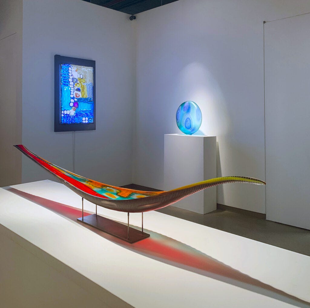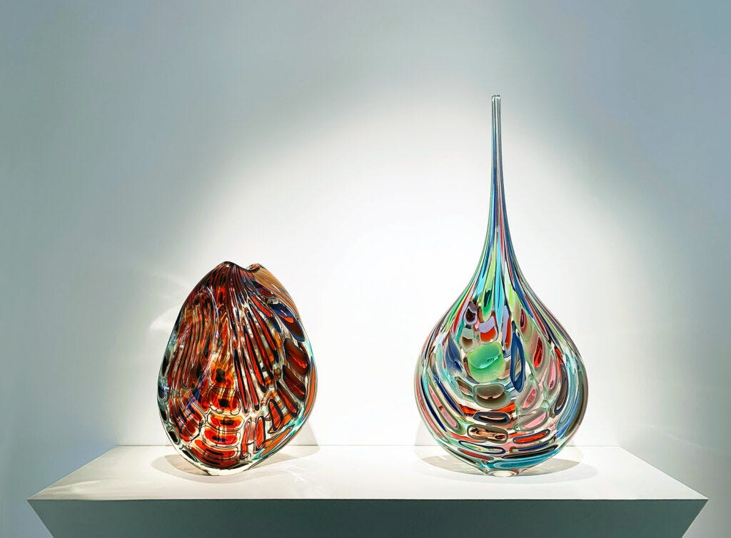 The new monographic show at Heller Gallery, presenting the wide breadth of Tagliapietra’s artistic creativity, is an important event in the world of art glass, and acknowledges his retirement at the age of 87. We were there this morning, visiting the show, to learn from Doug and Katya Heller, the husband-wife team who know more than anyone about the significance of Tagliapietra’s innovations and the personal stories behind the scene. He brought to the forefront the classical world of Muranese glassmaking, which had nearly vanished.