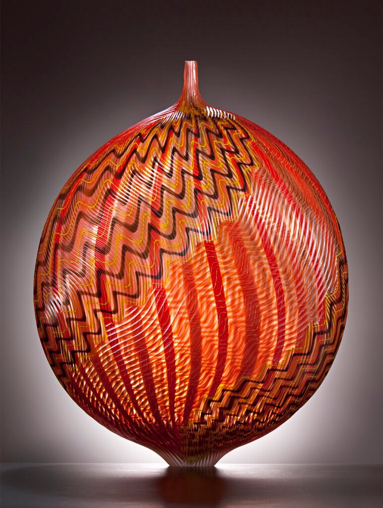 The exhibition at Heller Gallery is titled ‘Journey,’ as it comes to represent two decades out of 75 years of practice, while focusing on prime examples of new and archived works. Douglas Heller, the leading authority on contemporary glass, established the market for this medium, and his 48-year-old gallery is considered the temple of studio glass. This morning, we learned from him about Tagliapietra’s glass forms and their relationship to Italian design, about the bold colors and exuberant patterning, which ranges from murine, reminiscent of miniature fireworks displays, to the newest lozenge-shaped ‘aquilone’ (or kite) murine that have become the touchstone of his oeuvre. The exhibition will be open through November 6th, but if you miss it, you can see some of the pieces at the booth of Heller Gallery at the upcoming The Salon Art + Design. All images courtesy Heller Gallery.
