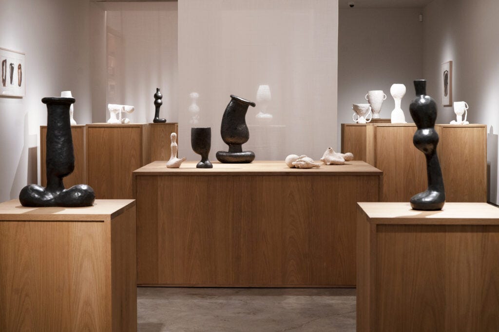 Last week, I attended the opening of a solo show for NYC-based ceramicist Maggie Wells at the Gallery. Entitled On the Nature of Things, it is the first solo show for the 81 year old artist, who brings together a boundless experience through creating objects in clay, crafted in the traditional method of coiling. Wells’ approach to materiality—expressed in her biomorphic sculptural vessels, her powerful abstracted and minimal forms, and in her black and white glazes—is the perfect fit for the aesthetics and vision of the Roman and Williams brand.