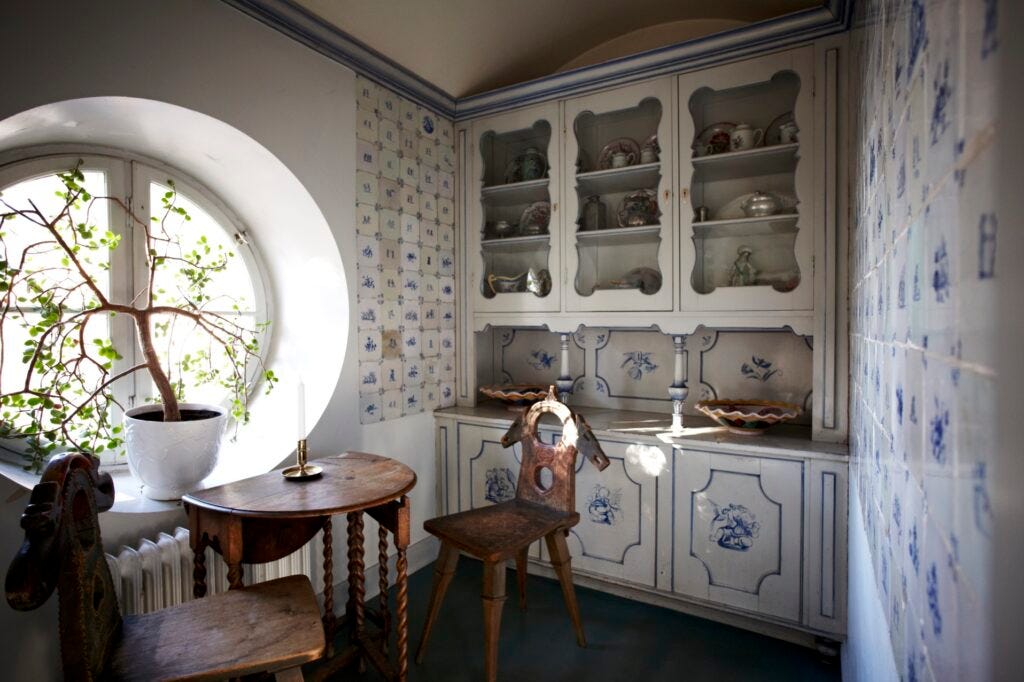 Here, we learn about his love for Italian antiquity, from what he had seen in Pompeii and Herculaneum. The house is filled with the most magnificent stone mosaics and murals, and today is staged in all of its glamour. It started when the newly married couple acquired a property in 1906, on the cliff of Herserud, and built a house designed by architect Carl M. Bengtsson in 1908. It was later expanded by his half-brother, architect Evert Milles. When Milles went to America, where he taught at Cranbrook Academy of Art in Michigan for two decades, the house was constituted into a foundation, and during his absence, visitors could enjoy the house and its gardens. Upon their return, the couple did not go back to live in the house, but rather lived in a smaller, typically mid-century house with the most beautiful dining room designed by Viennese interior designer Josef Frank. I think that this is the first of Frank’s fully realized interiors. But as a garden lover, I have to admit that I mostly enjoyed the gardens with their local beds of flowers overlooking the water, filled with fountains and pebbles. Simply a magnificent sight to behold.