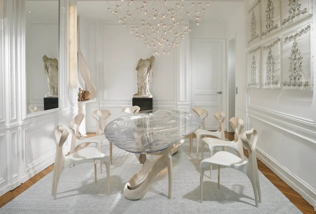 The dedicated collectors that Walsh attracts also share an ethos: holding the handmade in the highest regard and living with good design as an essential way of life. They fly from all over the world to meet him in his remote studio. Witnessing there firsthand the studio’s sophisticated research methods, innovative production techniques, and extraordinary mastery of materials, they fall in love all the more. They can see that, for Walsh, furniture making is about forging powerful relationships: between artist and patron, between objects and space, and between objects and their users. Walsh’s pieces converse with their surroundings—whether traditional, cutting-edge, minimalist, or maximalist—in the most sensitive yet dynamic ways. The charisma and excellence of his work imbues interiors with an unforgettable spirit.