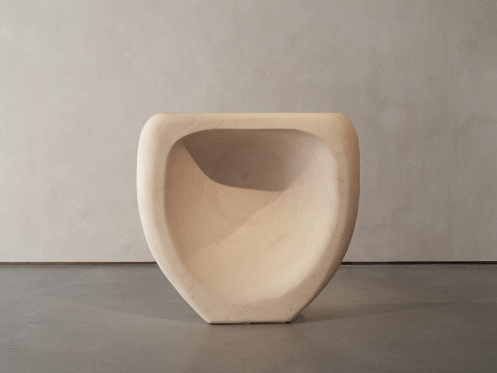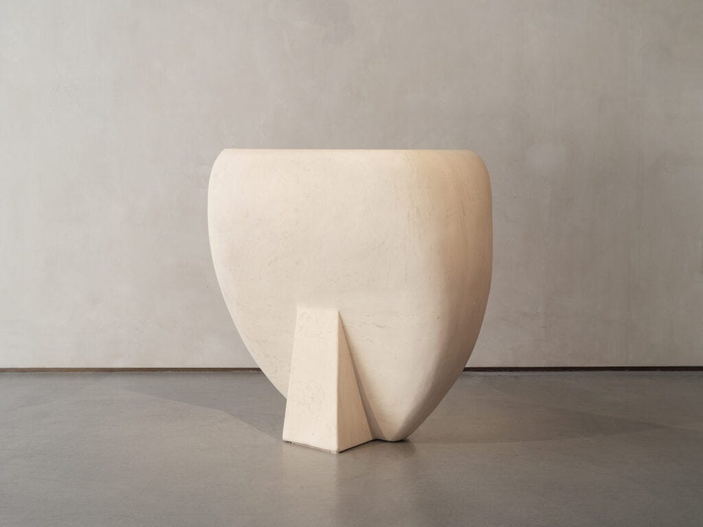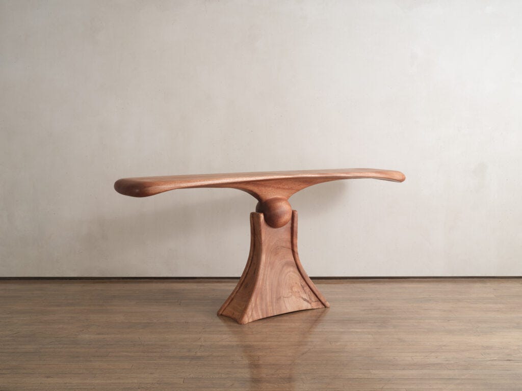 For Milan-based Italian artist Mauro Mori, every piece of furniture has a soul, a personality, and a spirit, with each piece ultimately reflecting its maker’s hands. The process of making Mori’s furniture is a long one, whether he is carving a wooden table in his small workshop on the island of Seychelles, or chiseling and hammering a console out of a block of limestone in the Tuscan town of Carrara. Every aspect of his work is made with his own hands. There are no machines, digital fabrication, or any advanced technology whatsoever. Machines, he believes, can’t achieve the spirit of the maker, and there is nothing more spiritual than the artist’s print. Think of the great Michelangelo who traveled to Carrara to choose the stone, and then sketched on a block of marble before beginning to chip away at it with chisels and hammers, revealing the shape and volume of the piece. This is Mori, old world and working only with the most traditional methods. Like Constantin Brâncuși—the Romanian patriarch of modern sculpture whom Mori refers to as his godfather—Mori’s sculptures exemplify symbols and symbolism.