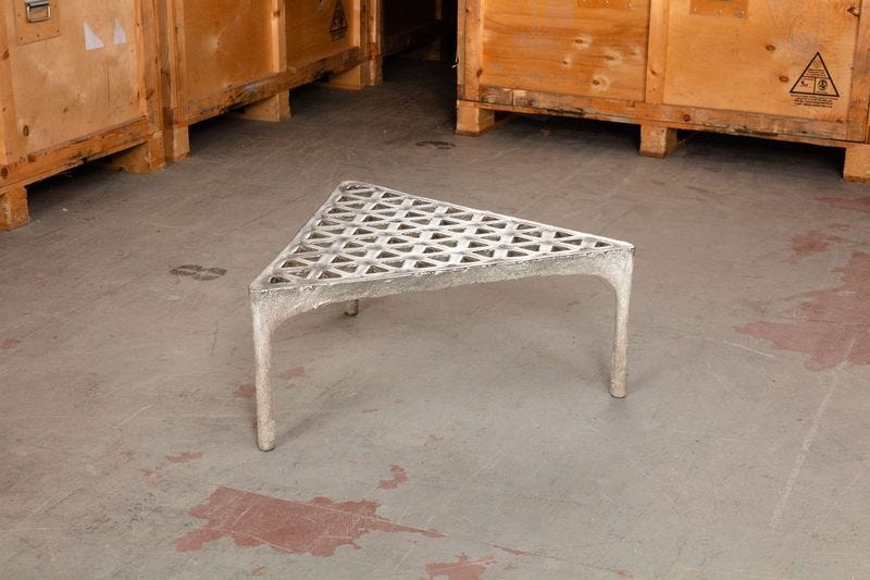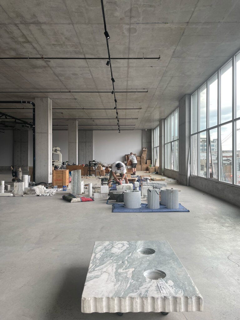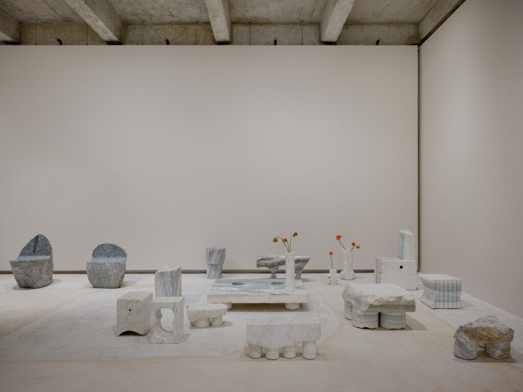 The exhibition Max Lamb: Inventory, which opened at Salon 94 this last week, is a career survey and showcase of the eponymous British designer’s own inventory, as the title suggests. This ambitious and stunning presentation is a pleasure to look at and fascinating to learn about. Having been in the making for nearly four years, Lamb was able to draw from his pieces that were stored in warehouses, galleries, and other spaces into completely new pieces and bring them together into one space. The space is a landmark building, designed by famed New York architect Ogden Codman Jr. and completed in 1915 in his signature Beaux-Arts style. It has been home to the National Academy of Design since the 50s, and for the past three years has also housed Salon94.