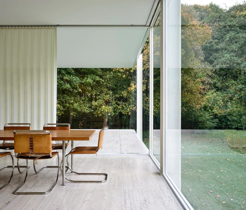The emotions flooded in when I entered the home. Once inside, the powerful magic of the design becomes clear as the boundaries between interior and exterior seemingly dissolve. You feel in your bones that you are not just looking out at nature, but that you are in nature—as if the structure does not exist. Mies, we learn in the book, intended the home to be experienced in exactly this way.