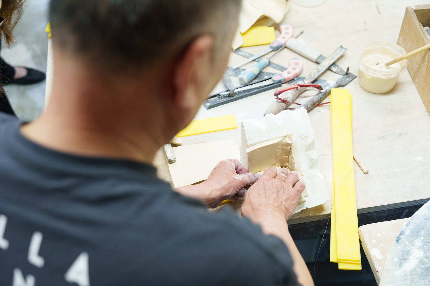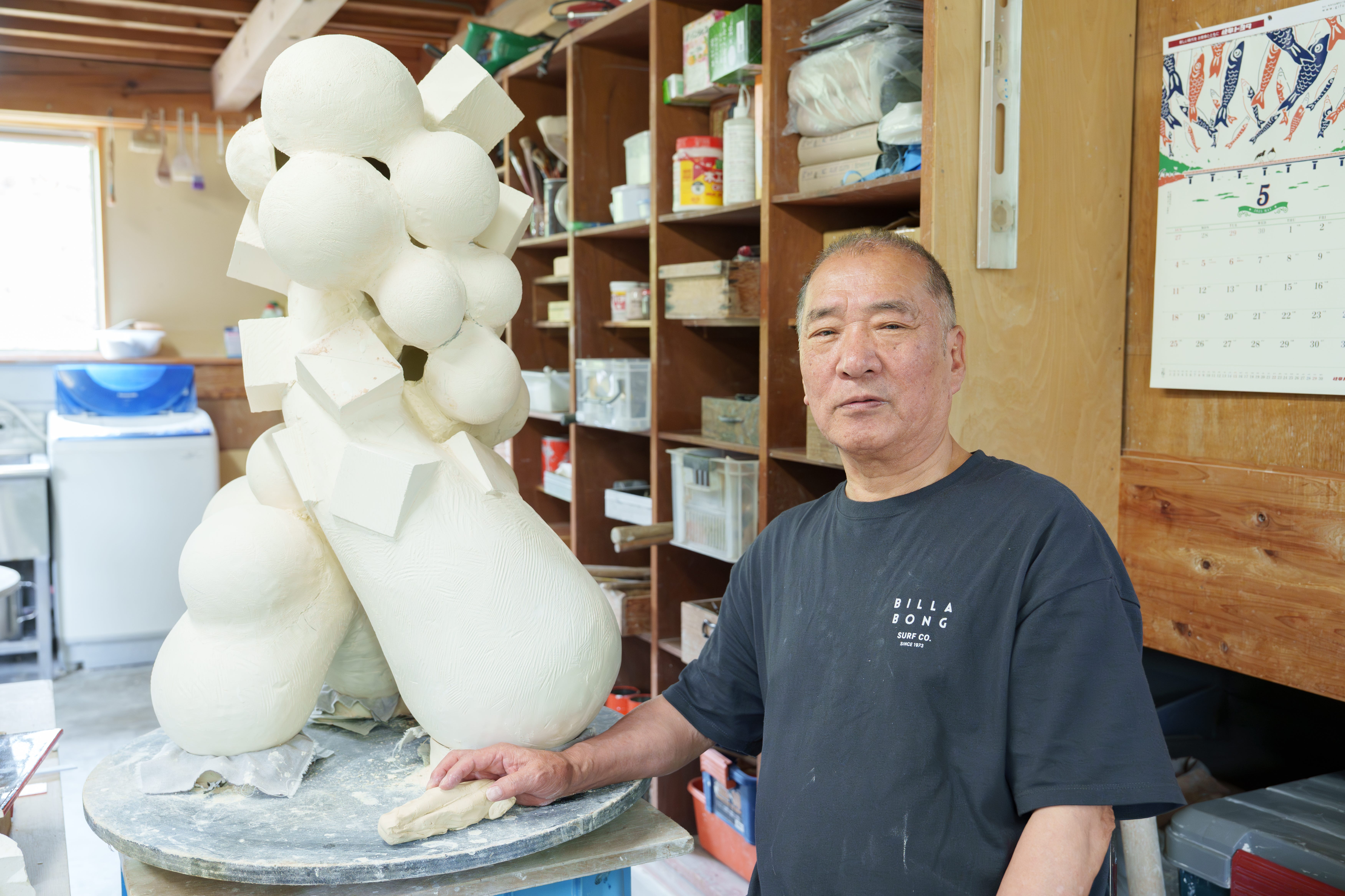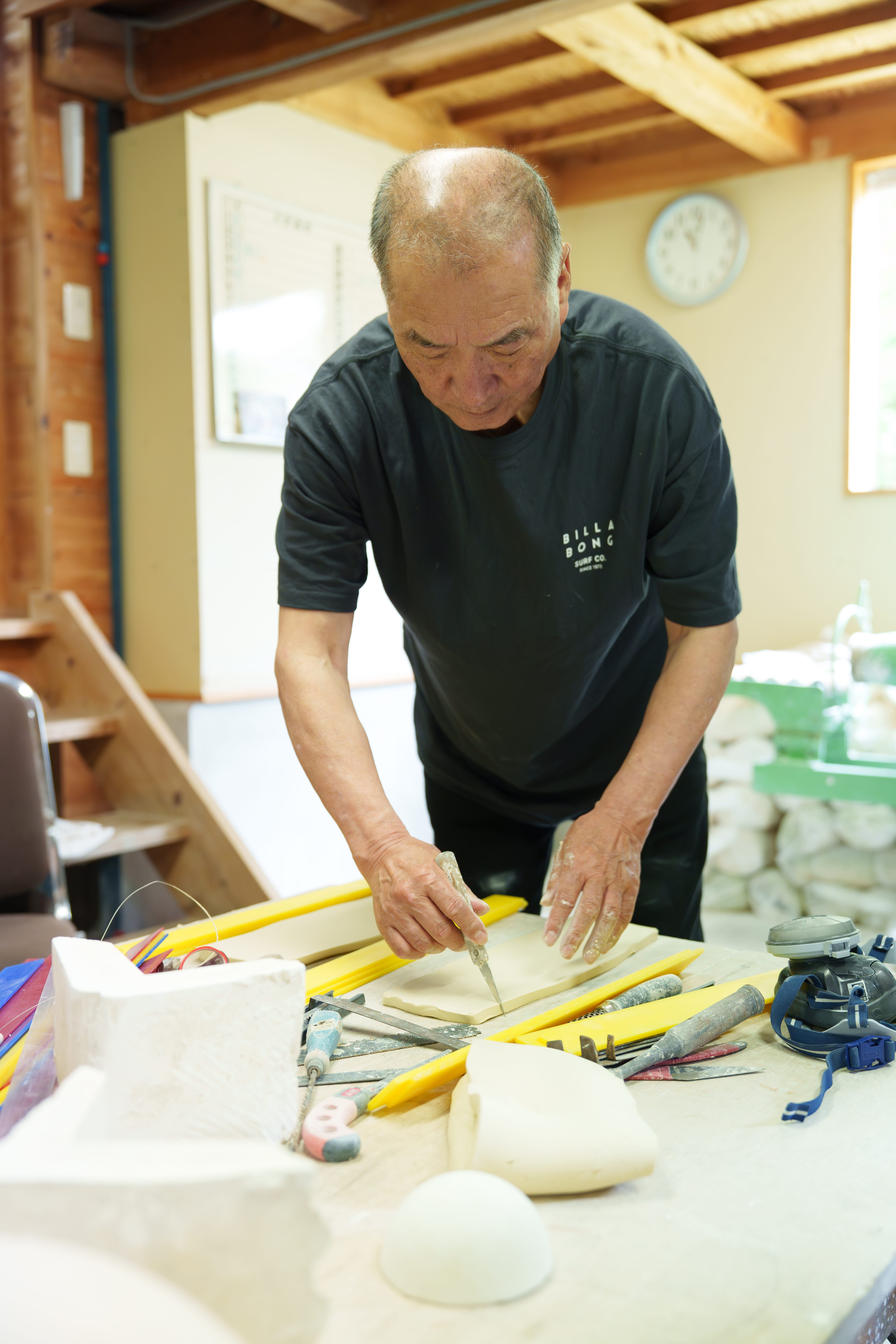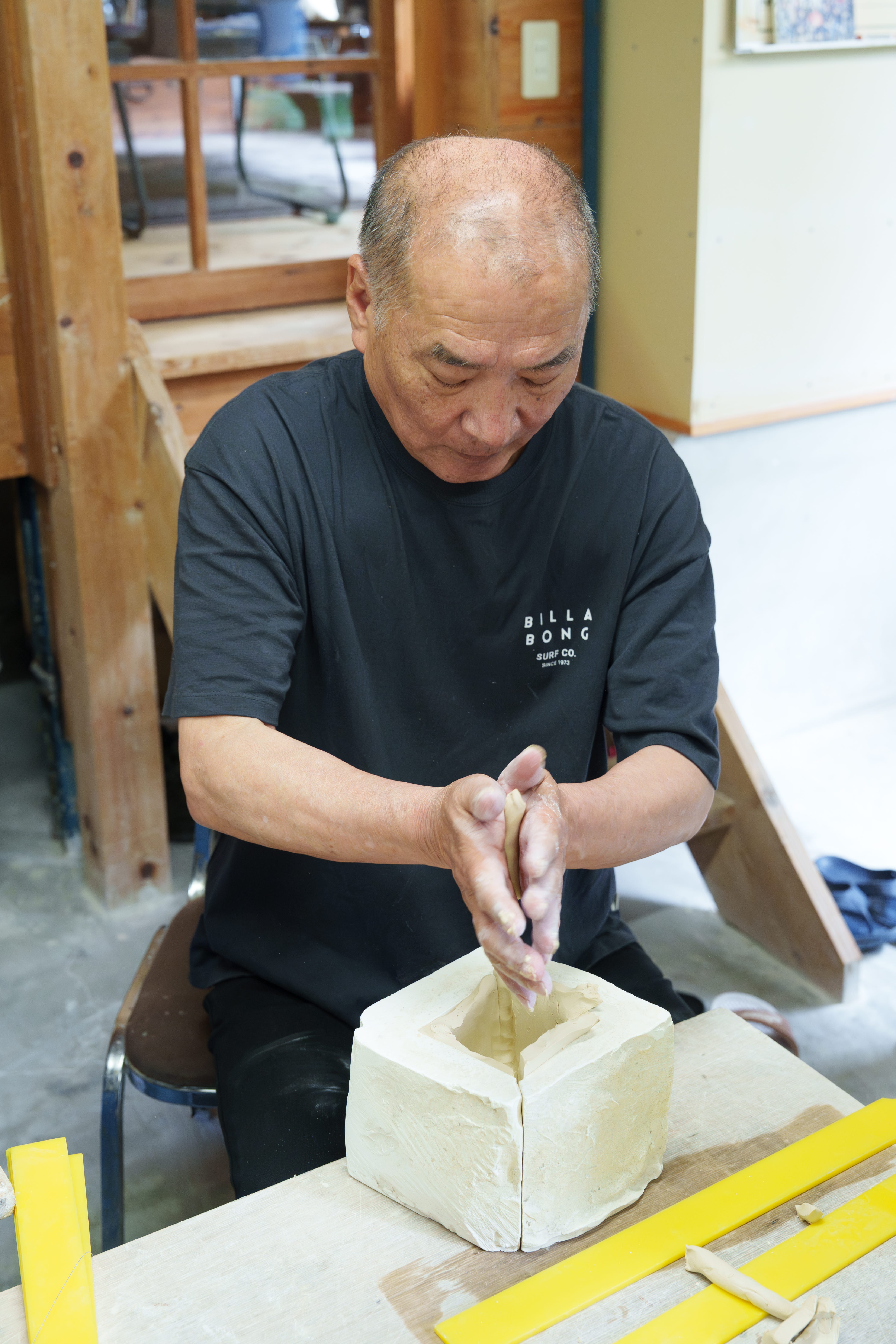 A graduate in ceramics from the Osaka University of Arts, he has been a pupil of the Sodeisha Movement, founded in 1948 in Japan, as a reaction against the exclusive use of clay to craft functionality and folk-driven objects, calling for a radical approach to clay. The founders of the Movement called for creating non-functional objects, to bring clay toward abstraction and conceptual contemporary art, and to engage with international art movements. This movement helped shape his oeuvre, as he constantly merged ceramics and sculpture, using clay to model unorthodox forms, and to express his narratives.