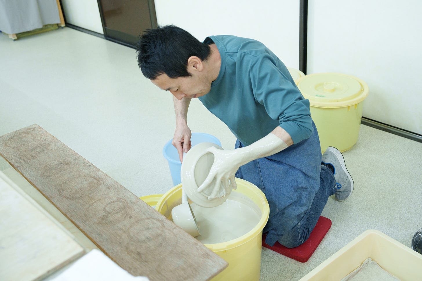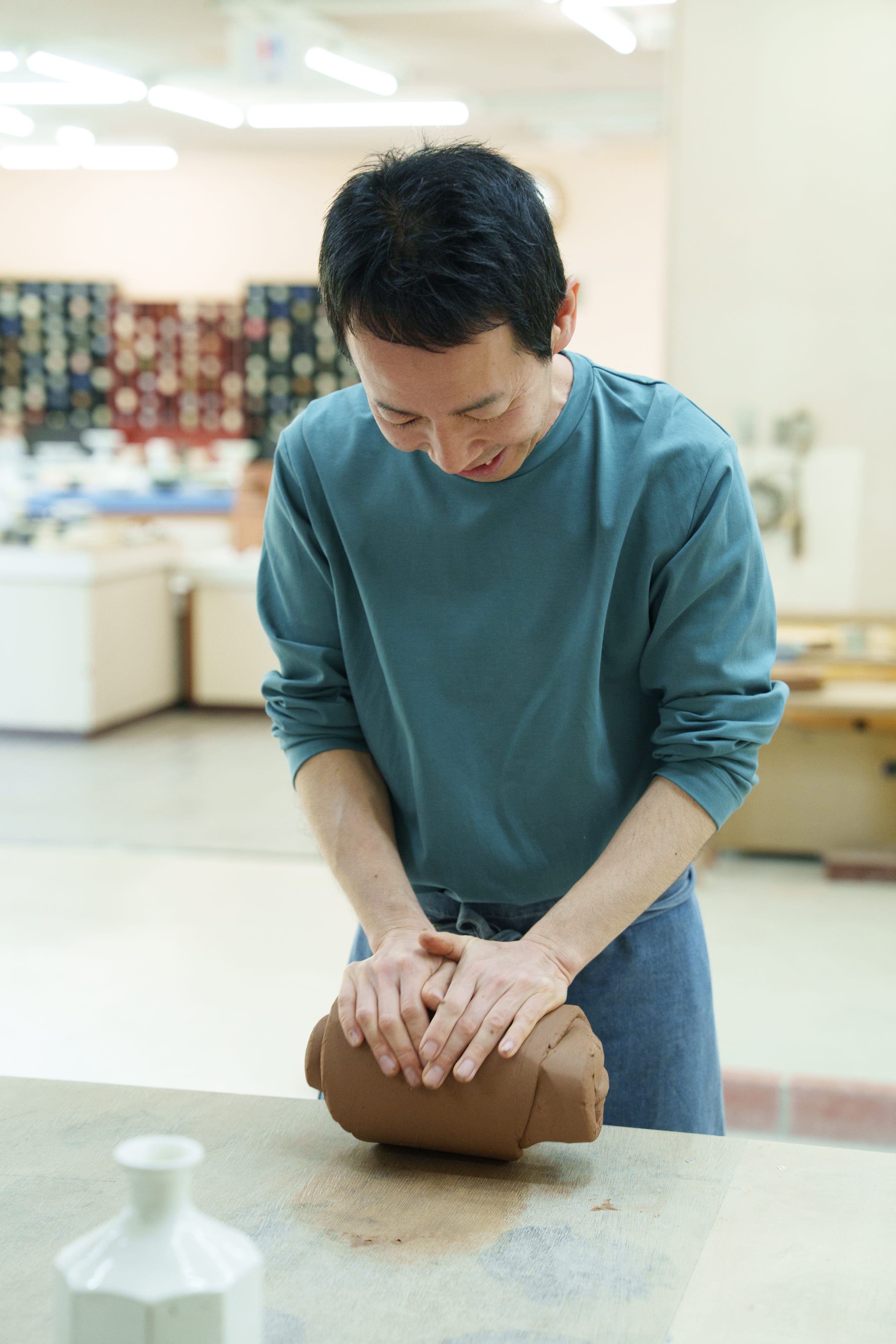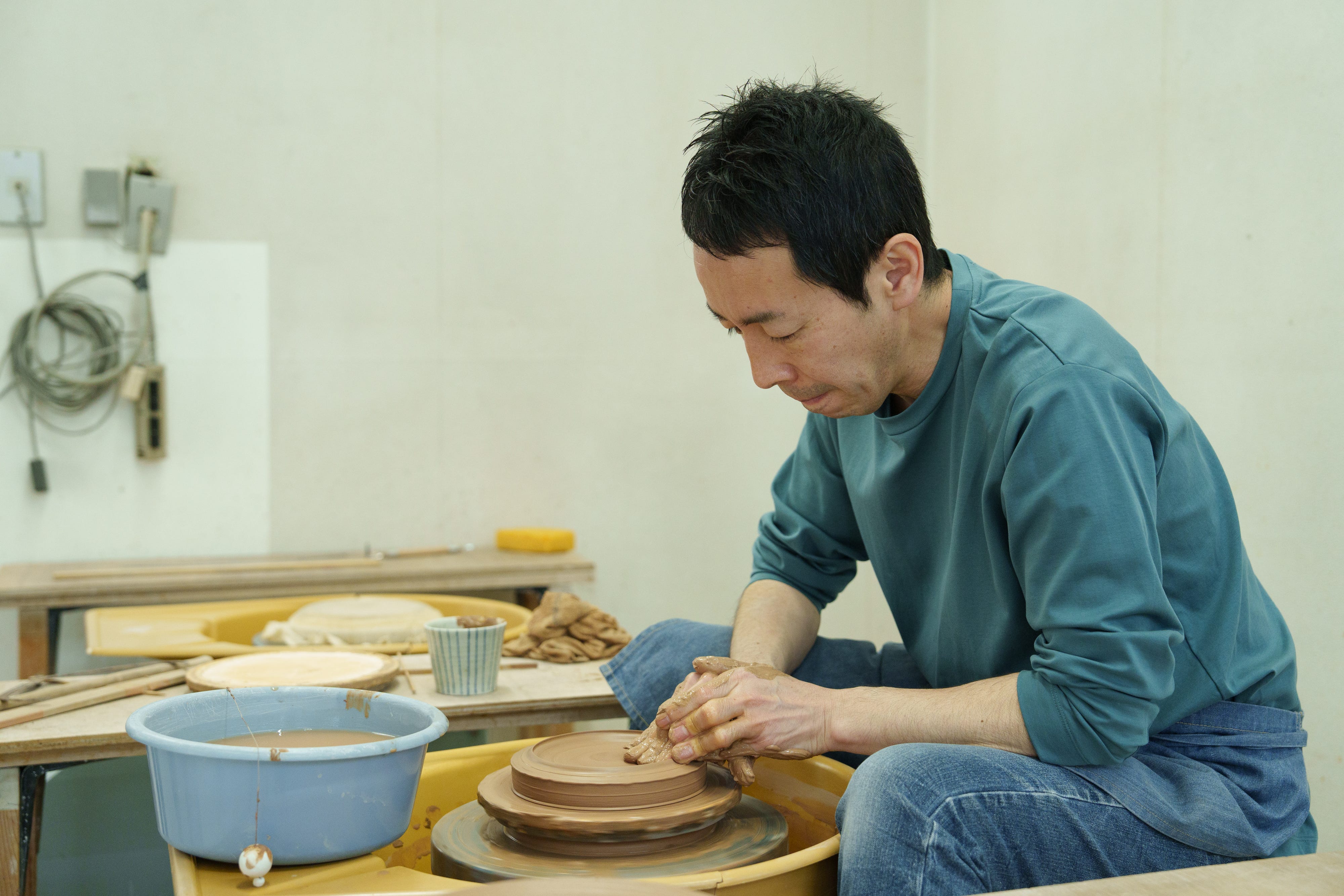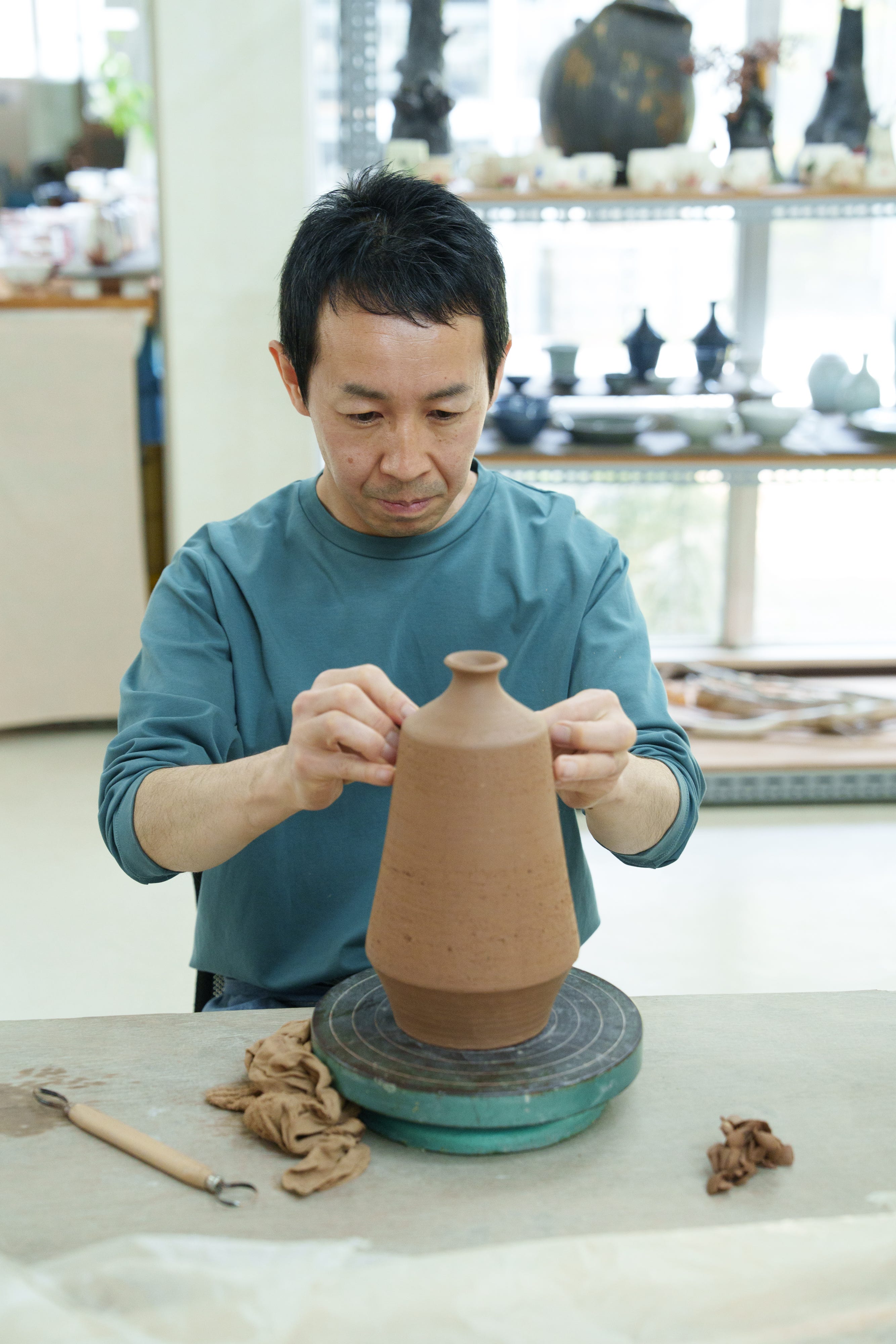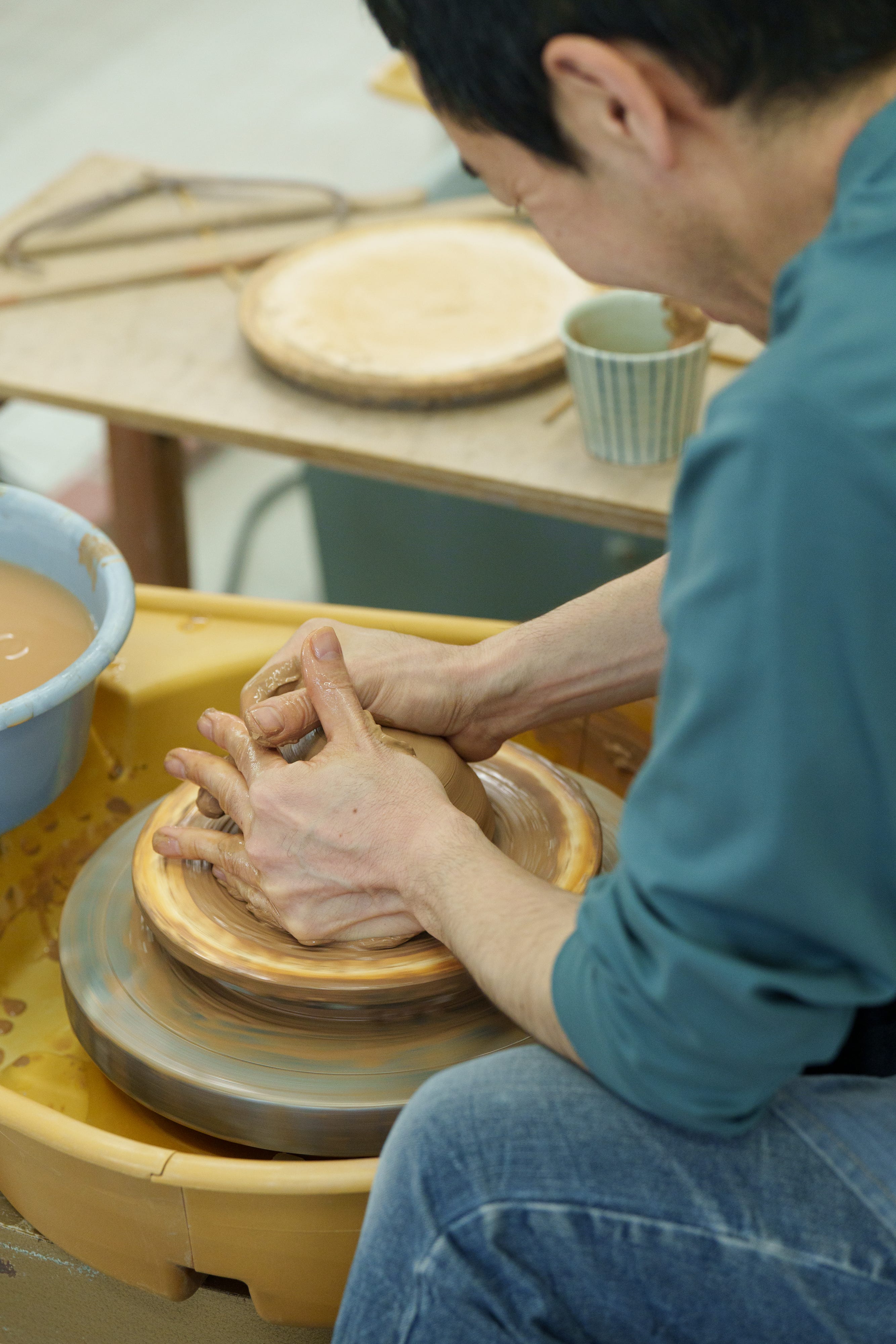 A second-generation ceramist, is working in Toki City, his birthplace. He focuses his creative energies on tabletop pieces, and his pieces have a distinctive milky-white, powdery look, as he applies a white liquid clay to a dark clay body. While Kato is using the ‘Kohiki,’ a traditional Japanese pottery technique, originating in Korea, and characterized by this unique texture, it is the type of tableware that he is crafting in Mino, and the shift he has made in infusing traditions with contemporary notions of lifestyle, that make his work so intriguing. He has devised tableware for Westerners, far removed from typical Japanese tableware, known for its small scale for Japanese cuisine, and for reflecting seasonal changes. Like his local peers, proud of working in Toki, he likes to call his work ‘Toki Ware.’.