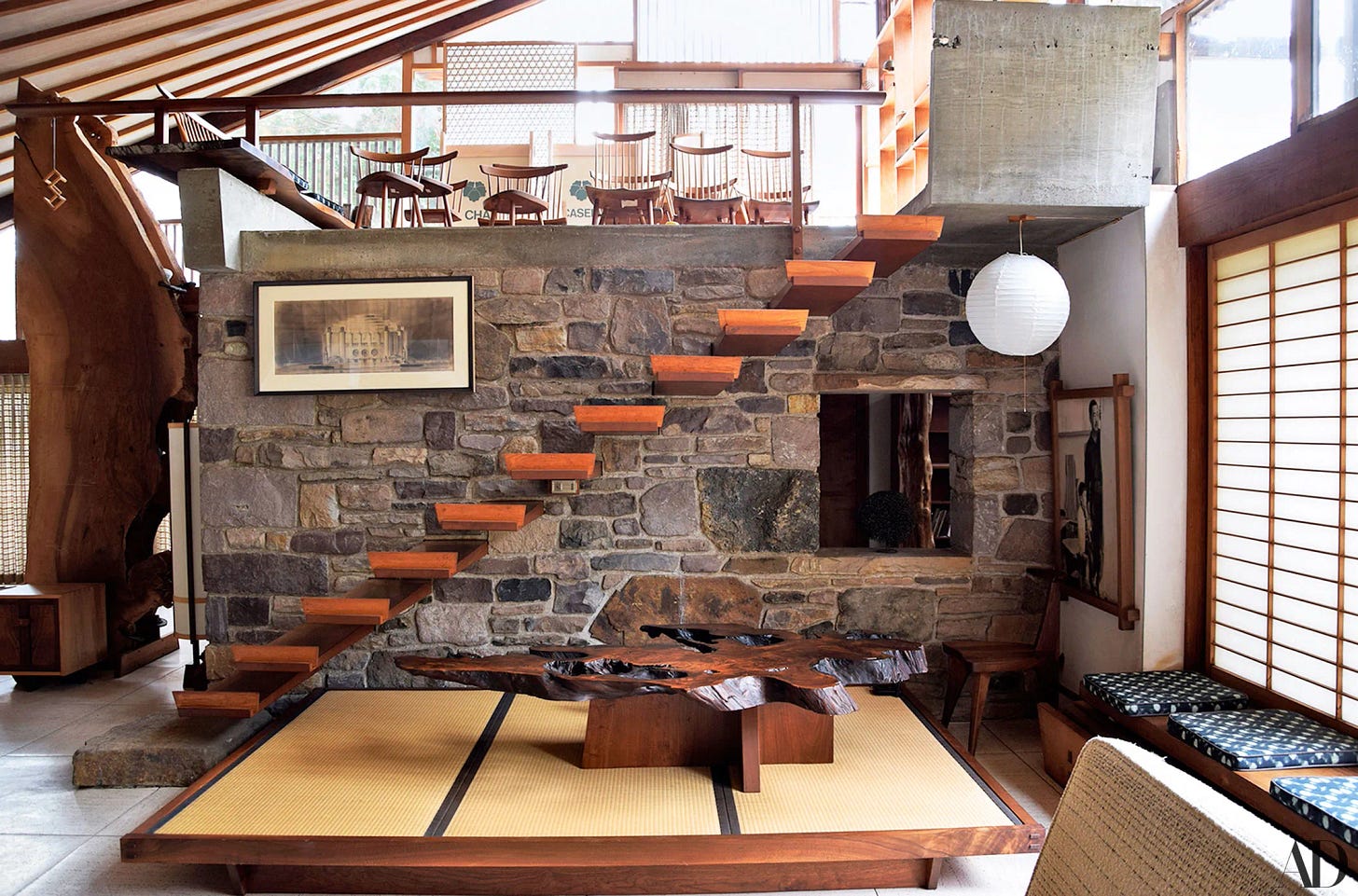 Now that the foundation has a special mission—to preserve the family home, a National Historic Landmark recognized for its innovative design and craftsmanship—I have invited Nakashima’s daughter Mira, now the creative director of the George Nakashima Woodworker, to learn about the legacy of her father, about the greatness of his design, and about the plan to restore the house. Nakashima built it in the 1940s, and it reflects his philosophy about integrating modernism with traditional Japanese principles, and his vision regarding woodworking and craftsmanship. Today, the Family House urgently needs help.