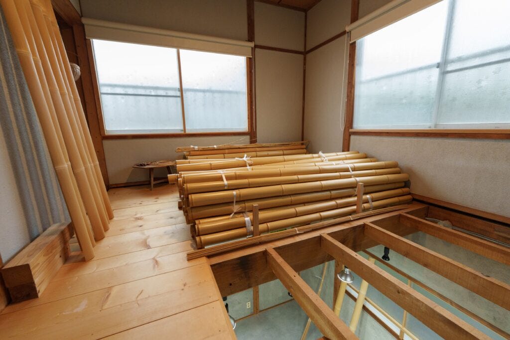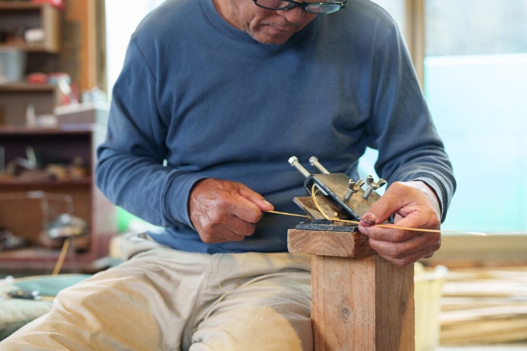 To see the best bamboo kogei, I traveled to Beppu, a hilly city famous for bamboo and hot springs, located on the southern island of Kyūshū. Here, centuries-old methods of bamboo weaving have been fully preserved, and, with the support of Beppu City Craft Institute, the region has become a hub for state-of-the-art bamboo research. Beppu is also home to the country’s only educational facility dedicated to bamboo craft; originally founded in the early 20th century, it operates now under the name Oita Prefecture Wounded Warrior Vocational Re-education Institute. It is the alma mater of Japan’s most accomplished bamboo artists (including the three I visited on my journey). Only 12 students are accepted per year, and the complex training requires two years—the first devoted to foundational skills, and the second devoted to personal mastery and individualized expressions. Off premises, students are mentored by eight professional bamboo craftspeople.