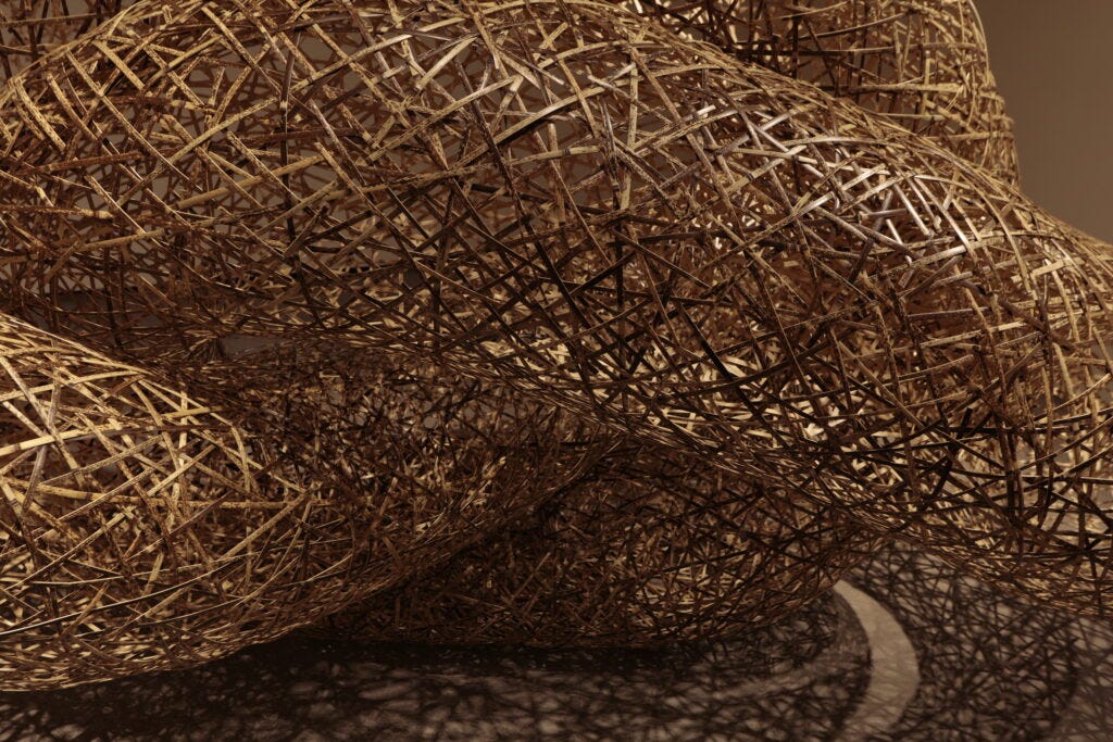 Chikuunsai IV’s intricate, site-specific sculptures have been commissioned by a number of important international institutions, such as New York’s Metropolitan Museum of Art, Paris’ Museé Guimet, and Geneva’s Baur Foundation, as well by high-profile brands like Gucci and Takashimaya. He has played a crucial role in elevating not only the art of bamboo but also the science. In his quest to expand the possibilities of the material, he has collaborated with Sawako Kaijima, a computational specialist and Assistant Professor at Harvard University’s Graduate School of Design, using software and 3D-printed molds to design mathematically complex structures that he then realizes in bamboo.