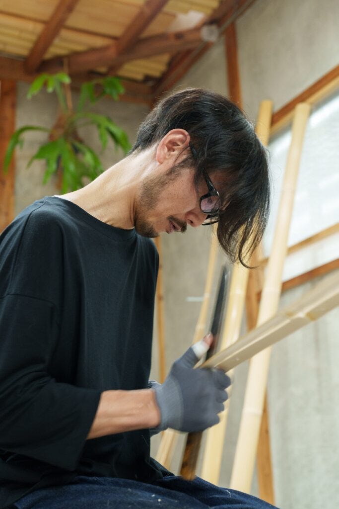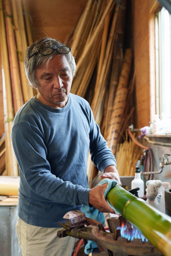 Osamu Yokoyama was not born in bamboo territory. In fact, he took up the craft as a second career, following a revelation around age 30 that his first profession—graphic design—was not his true passion. He wanted to create things by hand. Soon after, he moved his young family from Tokyo to Beppu and enrolled in the bamboo craft training center. There he met his mentor, bamboo artist Jin Morigami, and quickly recognized the artistic potential of this natural material.