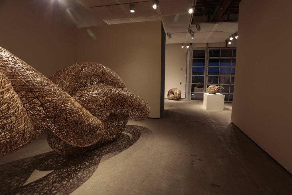 While his father, Tanabe Chikuunsai III, and mother both produced sculptural works during their careers, Chikuunsai IV pushed the envelope further by applying traditional weaving techniques to the creation of monumental, landscape installations made of thin strips of bamboo. His works have a nobility. Often reminiscent of bamboo forests, they invite the viewer to walk inside and around, highlighting the essential relationship between humans and nature.
