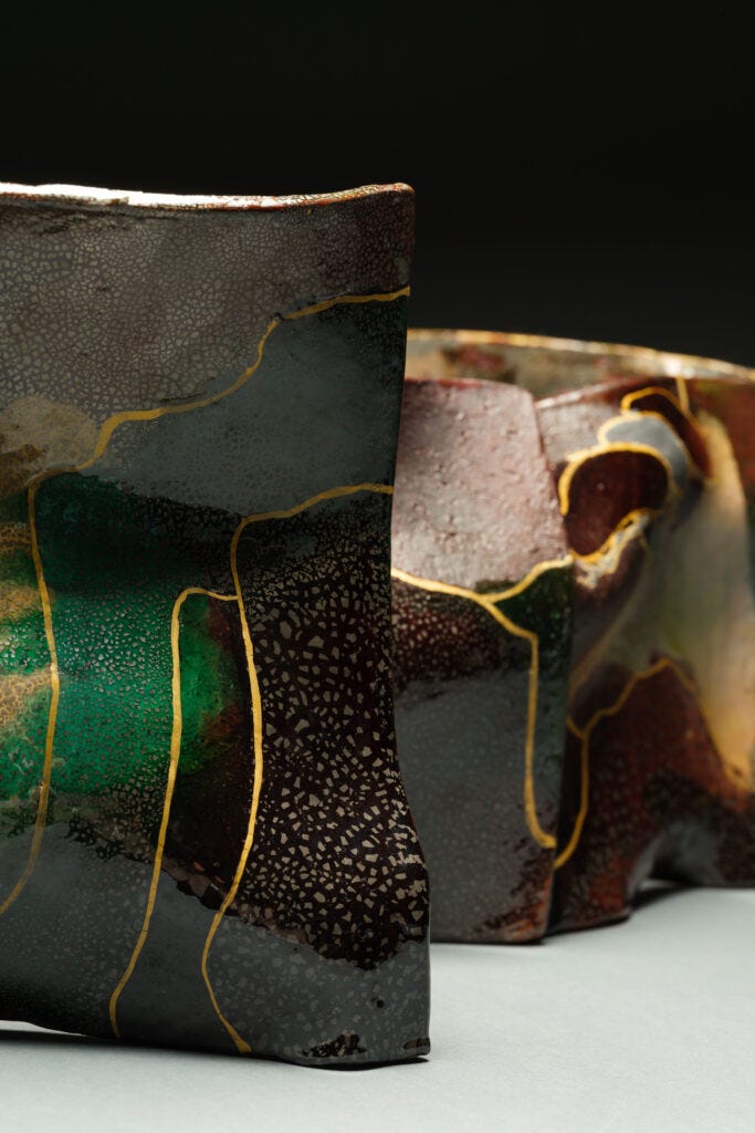 When he entered the world of ceramics in the 1980s, Nakamura immediately began to deconstruct forms and explore how unexpected shapes can transform the viewer’s experience of the surrounding space. He discovered the potential of clay slabs that have been cut, slashed, and dropped on the floor to give rise to functional objects with sculptural forms. He knew he was on the right path when the Metropolitan Museum of Art acquired one of his pieces in 1991—the institution’s first acquisition of a living artist in 25 years.