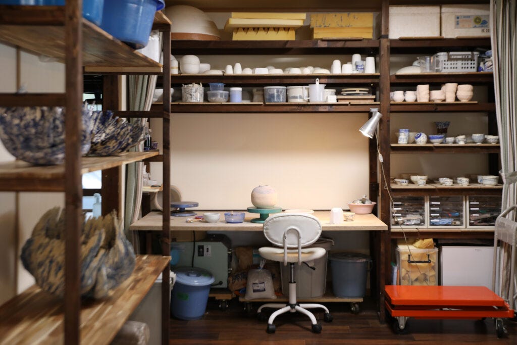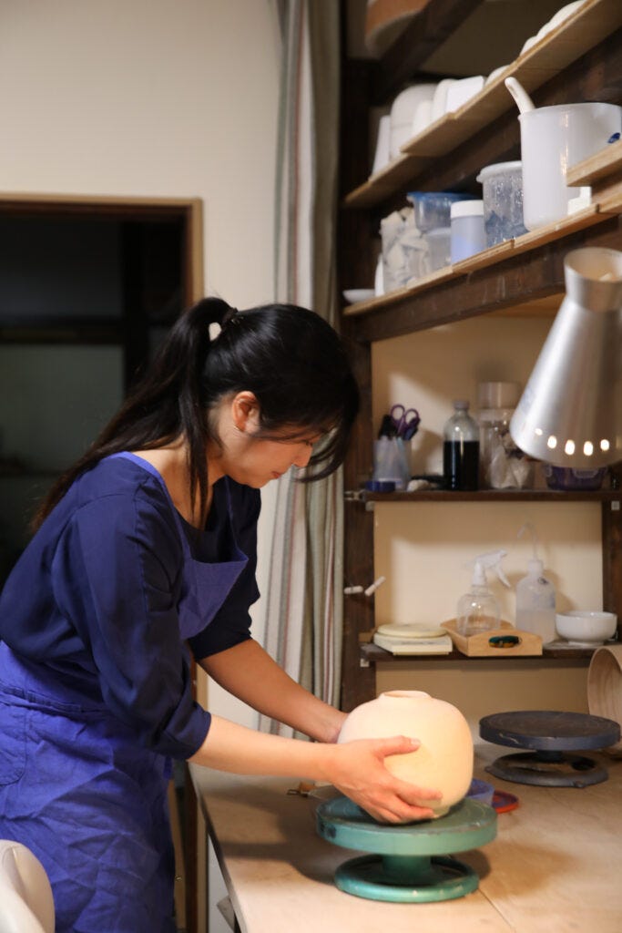 Hashimoto Machiko is the youngest kogei artist I met on my journey. For her, becoming a ceramicist was an early childhood dream. Today she is a professional artist based in Kyoto specialized in new approaches to traditional blue-and-white porcelain. In her home-studio, which she shares with her husband, ceramicist Tanoue Shinya, Hashimoto creates enormous vessels in forms inspired by flower blossoms and buds. Blue, she tells me, has been her favorite color as far back as she can remember, calling it “the color of life” and a symbol of the sky, sea, and life-giving water. Blue, she feels, connects her to nature, and with it she expresses the cycle of life in the most optimistic, dreamy way.