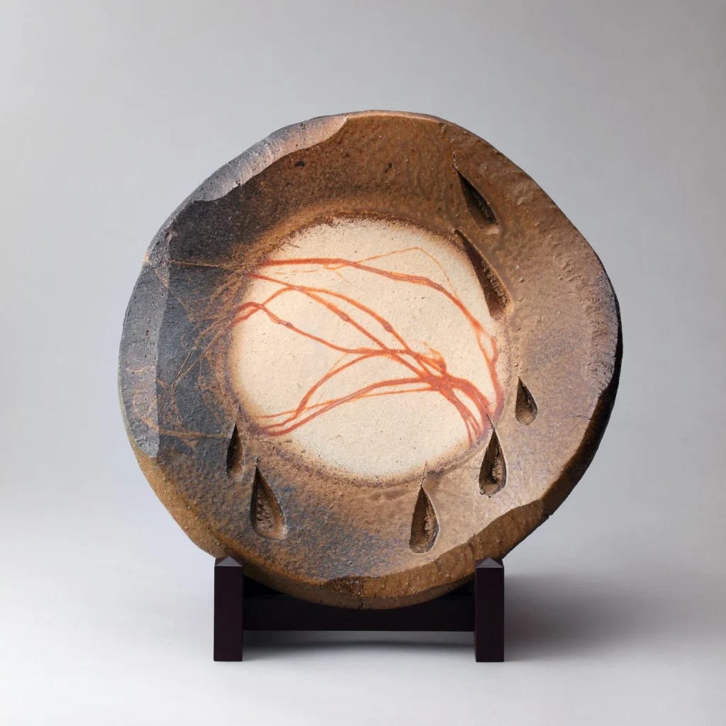 Another spectacularly prolific and accomplished star of Bizenware is Kakurezaki Ryūichi. Born in Nagasaki, he is not native to Imbe and some say that for this reason he was able to stretch beyond historical constraints while also remaining true to tradition. He has forged a new, simple yet poetic vocabulary in clay, which the potters of Imbe often call “futuristic.”