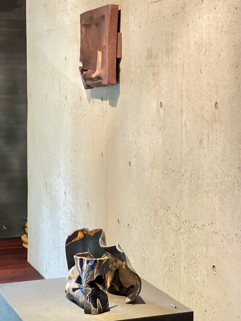 As Michael David Carrasco, Associate Dean of FSU’s College of Fine Arts told me: “A key satisfaction in collecting contemporary Japanese ceramics comes from the dialogue between centuries-old traditions and aesthetic innovations. Kakurezaki’s work exemplifies this exchange. His sculptural, angular vocabulary, complemented by his experiments with lighter color and coarse mountain clay, contrast with the organic kiln effects… challenging the viewer to immerse themselves in the seductive form and tactility of the clay body.”