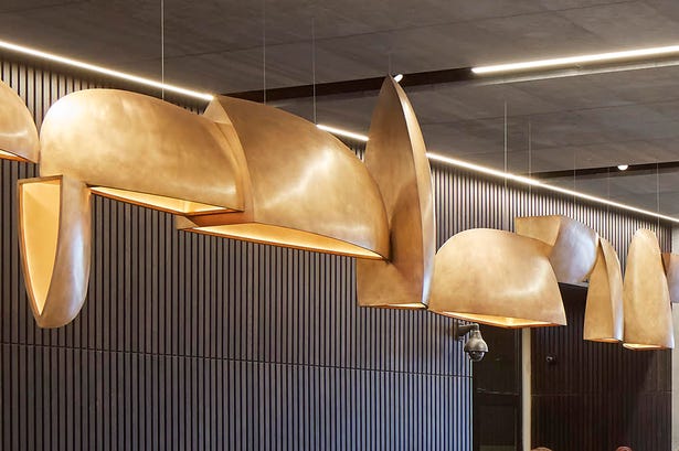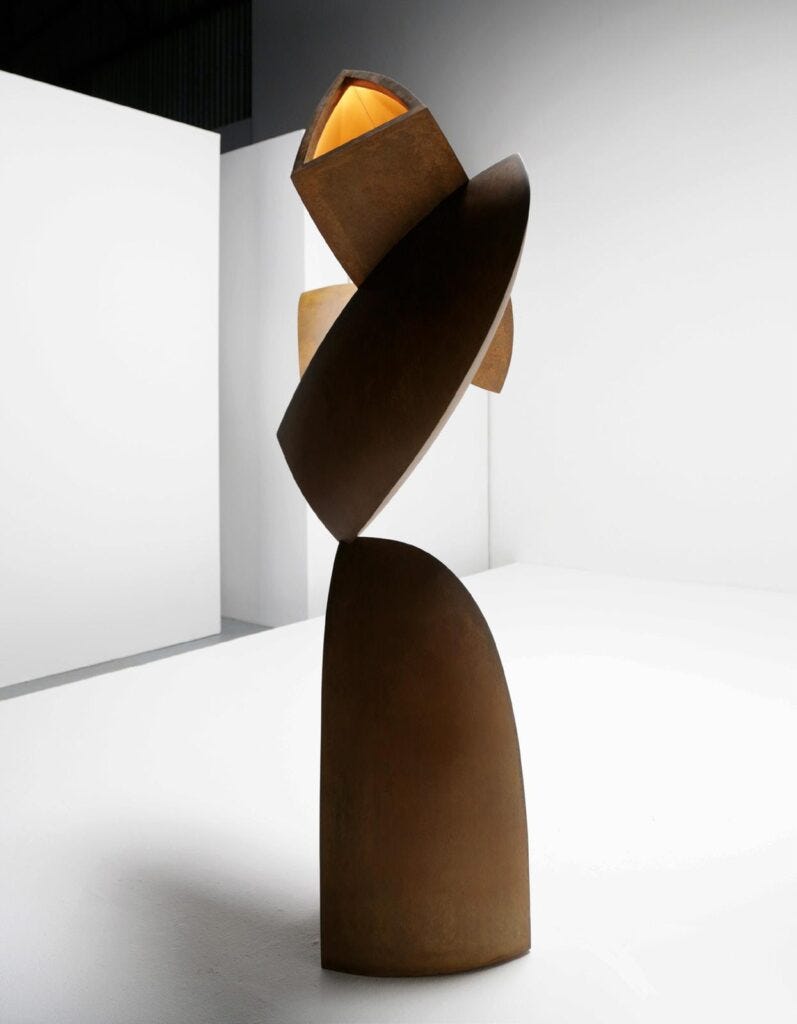 Barry’s sculptures are monumental, even when they are small in size. They carry a strong presence and the power to transform interiors, with each containing its own narrative through her authentic telling of those stories through design. We concluded our day at the Central Bank of Ireland’s new headquarters in Dublin where Barry took me to see her ‘Vessel Scape,’ an epic installation that was completed in 2017. This light sculpture is composed of cubistic forms, inspired by the Broighter Boat: gold artifacts that were created in the 1st century BC and were famously discovered in the north of Ireland, which are now on display in the National Museum of Ireland. This solid bronze of brushed finish dominates the space and introduces an artistic voice to the world of banking. Precise, strong, dominating, embodies the gift Barry’s art can give to the space. This work is represented by NY-based gallery Maison Gerard.