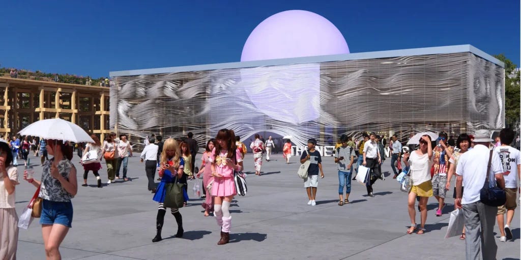 It will be the third time that Osaka will be hosting the Expo. The first, iconic Expo 1970, was also the first world’s fair held in Asia. Designed by Japanese architecture hero Kenzo Tange, it presented memorable avant-garde pavilions, created by Japan’s best architects of their time. One of the most memorable architecture events of the 20th century, its pavilions entered the history of architecture. Osaka hosted the Expo again in 1990, and at that time the focus shifted to horticultural progress, hosting 83 countries, which presented their national gardens.