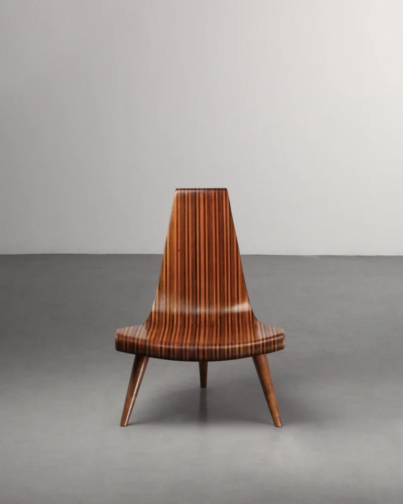 Badaró called Joaquim Tenreiro: Masterworks, the recent exhibition at Carpenters Workshop Gallery, a “milestone” in the designer’s connoisseurship. Focused primarily on contemporary design, Carpenters introduced historical Brazilian Modern into its program this past year with multiple shows, both onsite in Paris and London and online, in a demonstration of the genre’s rising prominence in the collectible design market. With plans for another show in New York this Spring, the gallery’s Tenreiro show in Paris featured exceptional pieces, mostly bespoke, that underscored the designer’s innovations in form and unparalleled woodworking skills, which in turn contributed greatly to the understanding and valuation of Tenreiro’s work while attracting new audiences.