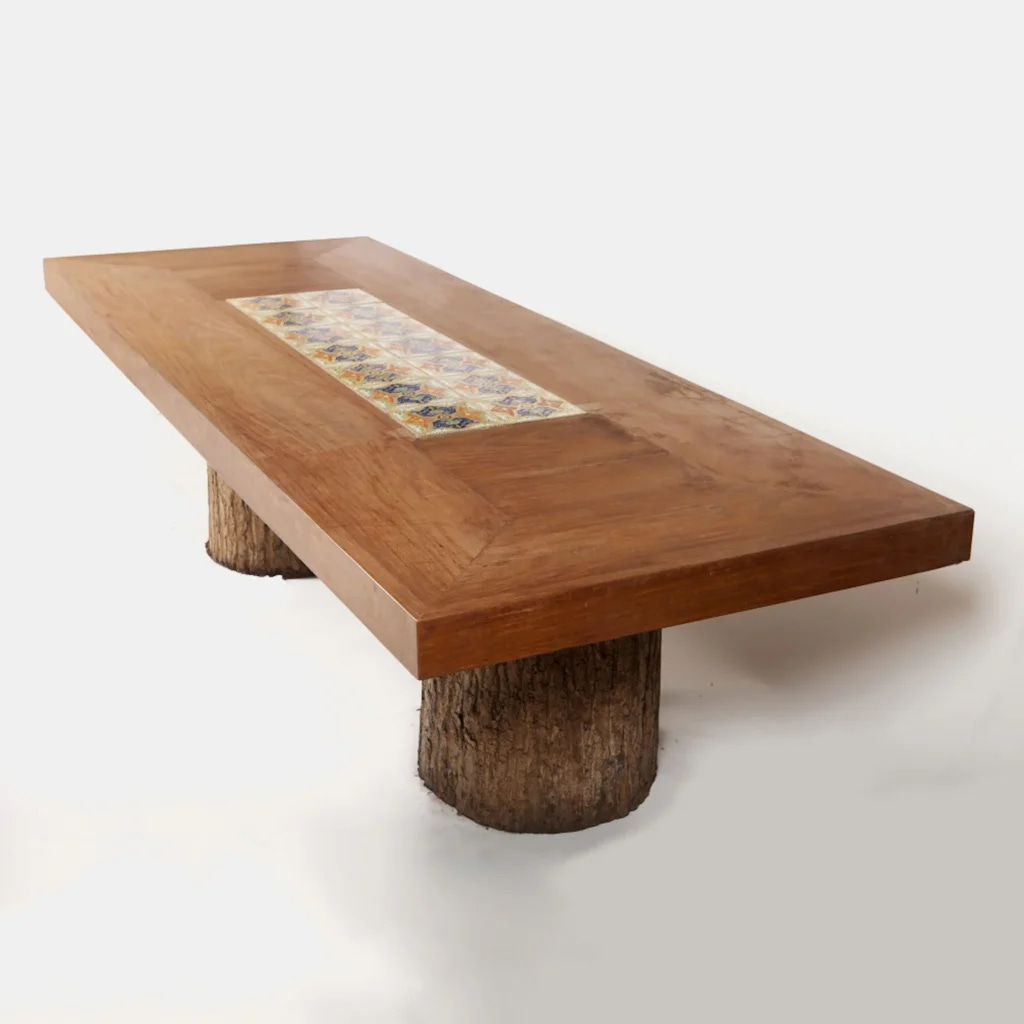 In the past few years, Tenreiro’s title as the superstar of the Brazilian Modern market has been challenged by architect-artist José Zanine Caldas (1919–2001). The vision, philosophy, and vocabulary of the two designers could not be more different. While Tenreiro designed for bourgeois homes and upscale modernist buildings, Caldas was a radical environmentalist who created furniture as a political statement. His most valued pieces are heavy, biomorphic, and make use of entire tree trunks—powerful designs that are “almost impossible to knock them off,” according to Badaró.