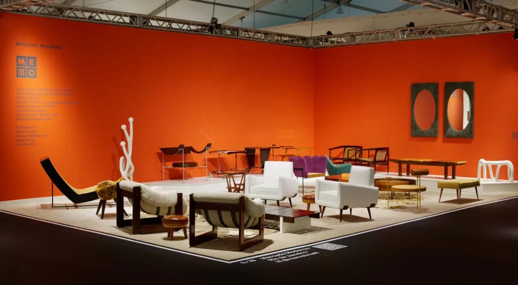 My conversation with Badaró concluded with a fascinating look at the growing interest in the design work of Abraham Palatnik (1928–2020), the Rio-based Israeli-Brazilian kinetic artist who created furniture in the 1960s. Palatnik has long been associated with his series of colorful moving sculptures, but we learned from Badaró that his furniture—often featuring glass panels painted with surrealistic motifs—is no less compelling. For the past two decades, Mercado Moderno has been collecting Palatnik’s furniture, which looks quite unlike the work of his Brazilian Modern counterparts. This body of work is personal and expressive, perhaps best identified as “art furniture.” One day, Badaró told us, it will be widely recognized as an important contribution to the story of postwar furniture design. Given Mercado Moderno’s track record when it comes to Brazilian Modern in the collectible design market, I have no doubt that she is correct.