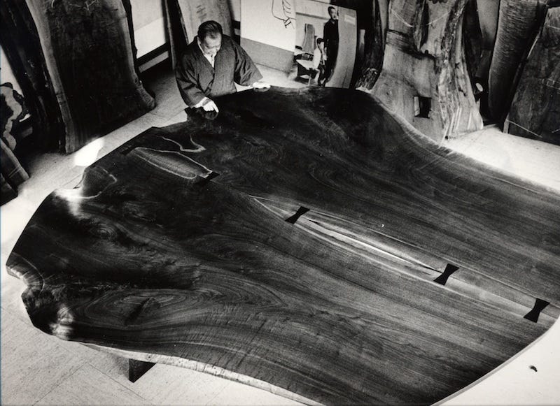It was just three years before I had first met him that George Nakashima acquired a monumental magnificent slab of American walnut of the type you find once in a lifetime. Instead of using it to create one of his famed tables for his clients, the American-Japanese architect-woodworker decided to devote this unusually beautiful wood to the world’s peace. He crafted an ‘Altar for Peace’ (above), and on New Year’s Eve of 1986, placed it at the Cathedral of St. John the Divine in the Upper West Side of New York City.