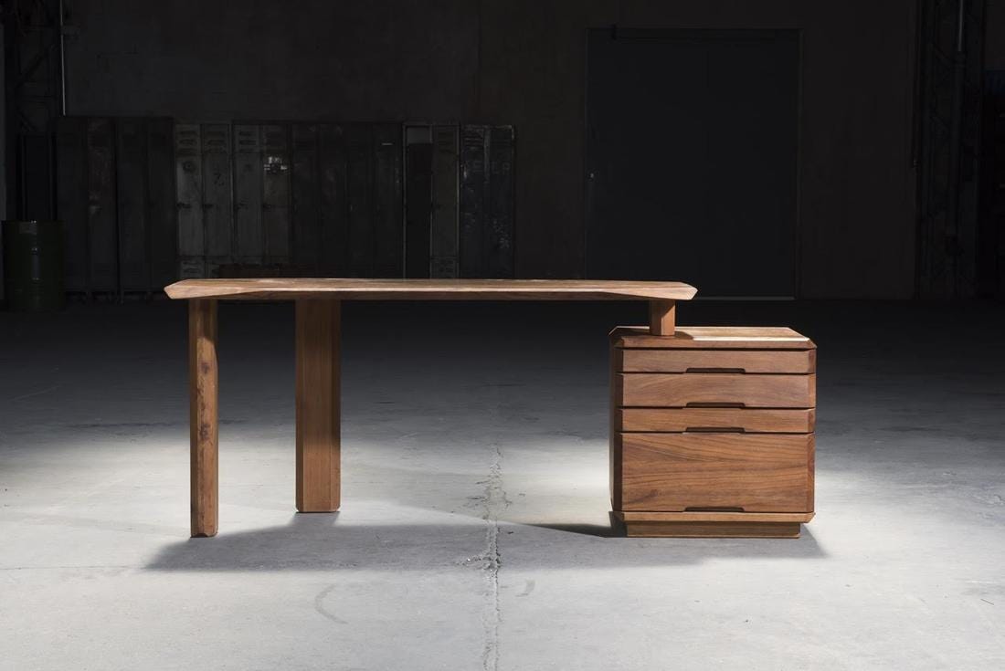 Another great achievement for Magen H Gallery with a monographic exhibition ‘Pierre Chapo: A Modern Craftsman,’ opens tomorrow. I am grateful to be asked to write an introduction in the book published in conjunction with this important show, which comes to assemble new information and to reveal a French talent who has remained underappreciated in the United States. Chapo’s rich and accomplished career spanned three decades that began in the postwar years and extended to 1987, the year he died. Throughout this period, he created furniture which was rooted in the French vernacular and in his love for the crafts. The individualistic, functional, and somewhat architectural object, the touchstone of his oeuvre, was where Chapo best expressed himself. Whereas most French designers active during the postwar years perceived modern design as a tool for social progress and as a way to improve the lives of the millions, Chapo began his career as a furniture designer in the late 50s, when French design had made a departure from the industrial look and the socialist agenda of the immediate postwar years, with a quest for luxury, craftsmanship, and individuality. It was the perfect moment for his craft production. Chapo’s legacy, and his contribution to the story of French design shall not be measured without considering the role of Nicole Lormier, his wife and life partner. Their passion for travel throughout Europe, Central America, and the United States (1954-6) had planted the seeds for his design career. The two opened their successful gallery in 1957, a year after their more famous counterpart, Steph Simon, open his design shop. It is while operating the gallery, that Chapo began creating furniture. And I really love the photography of the pieces against the industrial fabric of Tribeca.