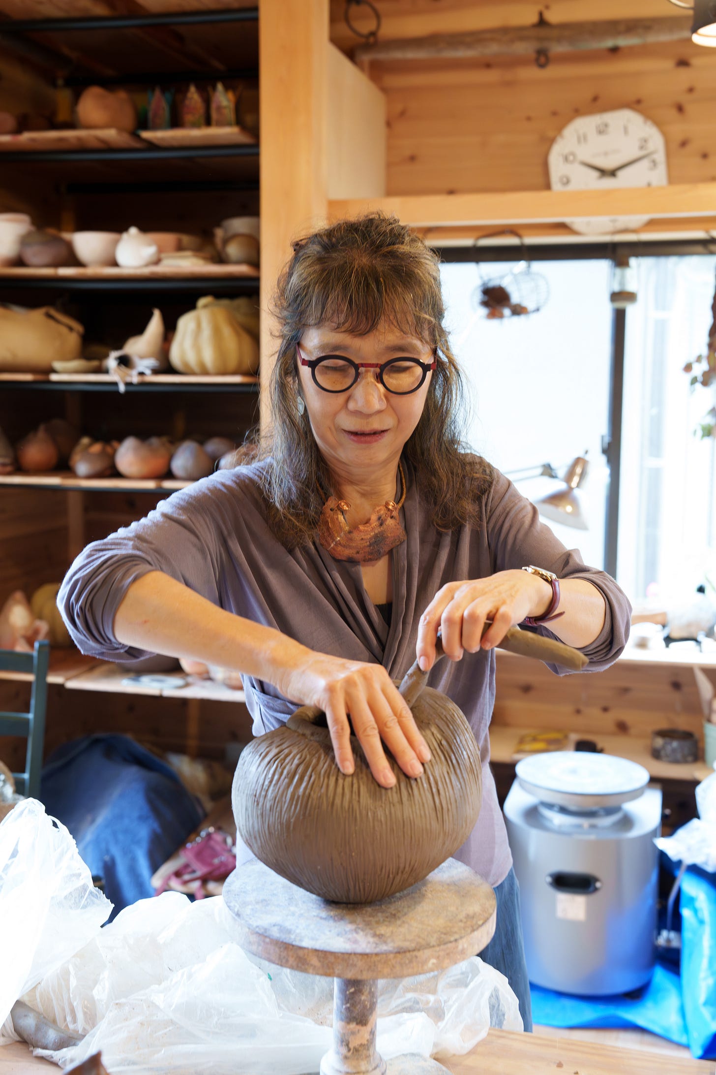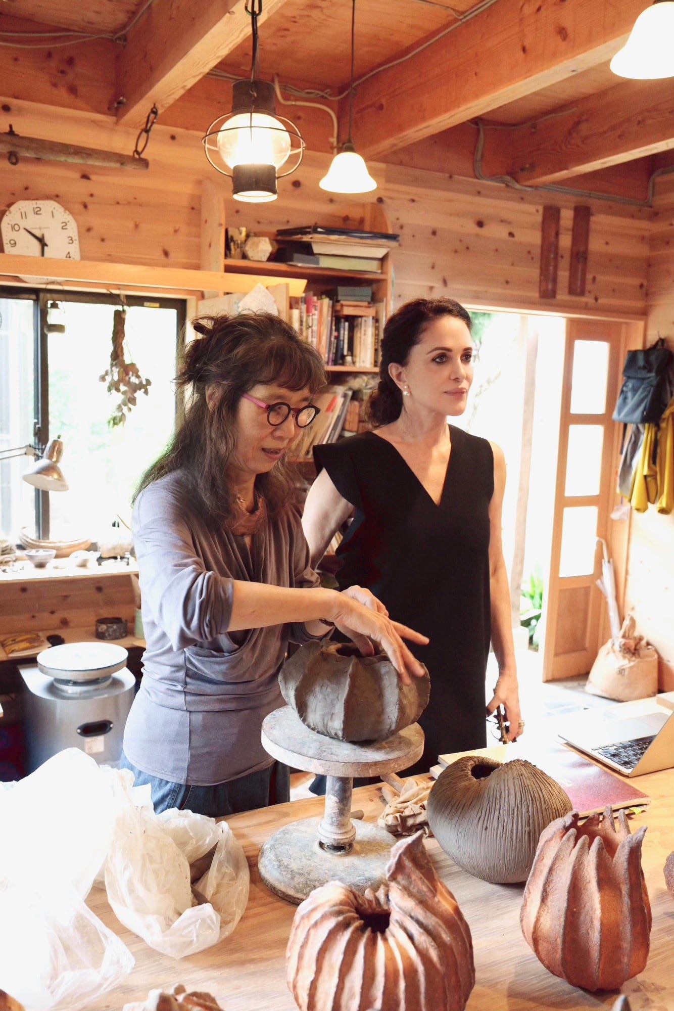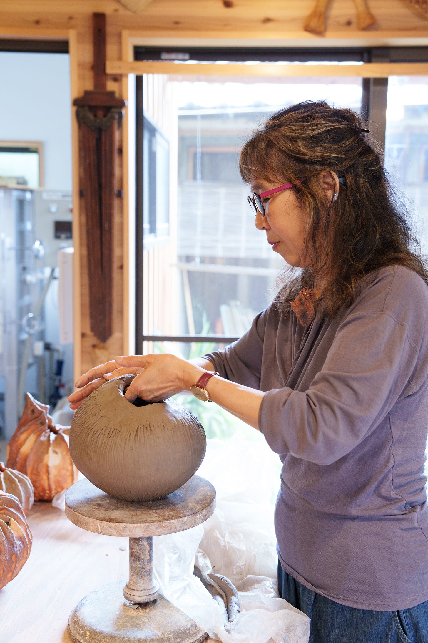 In my exploration of the narrative of contemporary Japanese kogei, the new face of the handmade, I have been traveling throughout Japan on a journey of discovery, traversing small towns, rural villages, rivers, forests, and mountains to reach the studios of Japan’s most talented artists; those who apply traditional craft mediums to create contemporary art and design in their own voice. I have been searching for the individual voice, for those with the rare ability to infuse heritage with innovation, to think outside the box, for those who have devoted their lives—with astonishing energy—to transcending convention in taking kogei to new horizons. This is how I arrived at the studio of Kyoto-based ceramicist Momoko Takeshita-Keane on one early summer day.