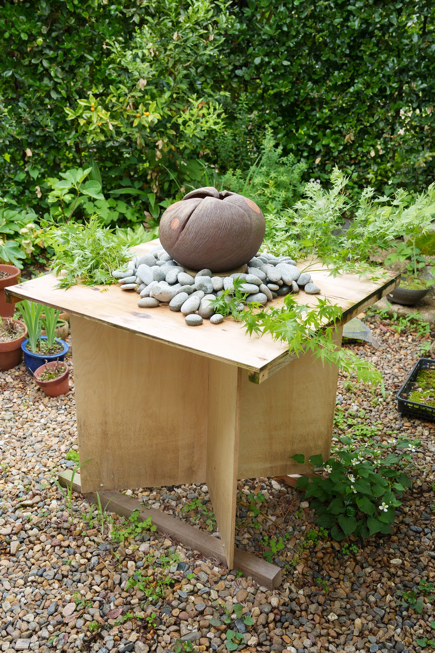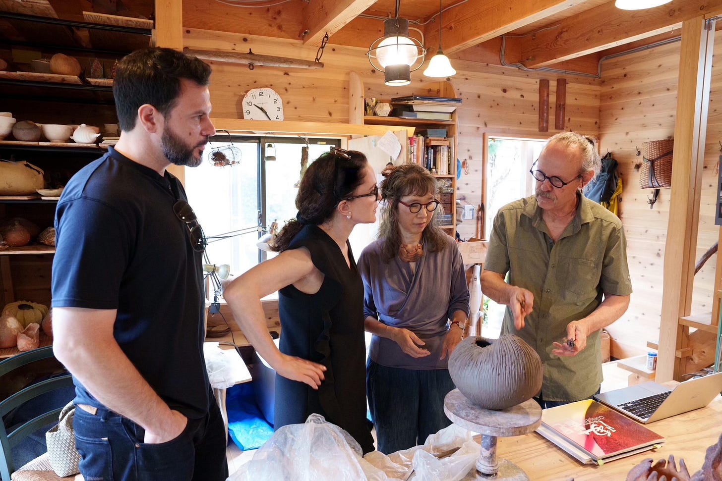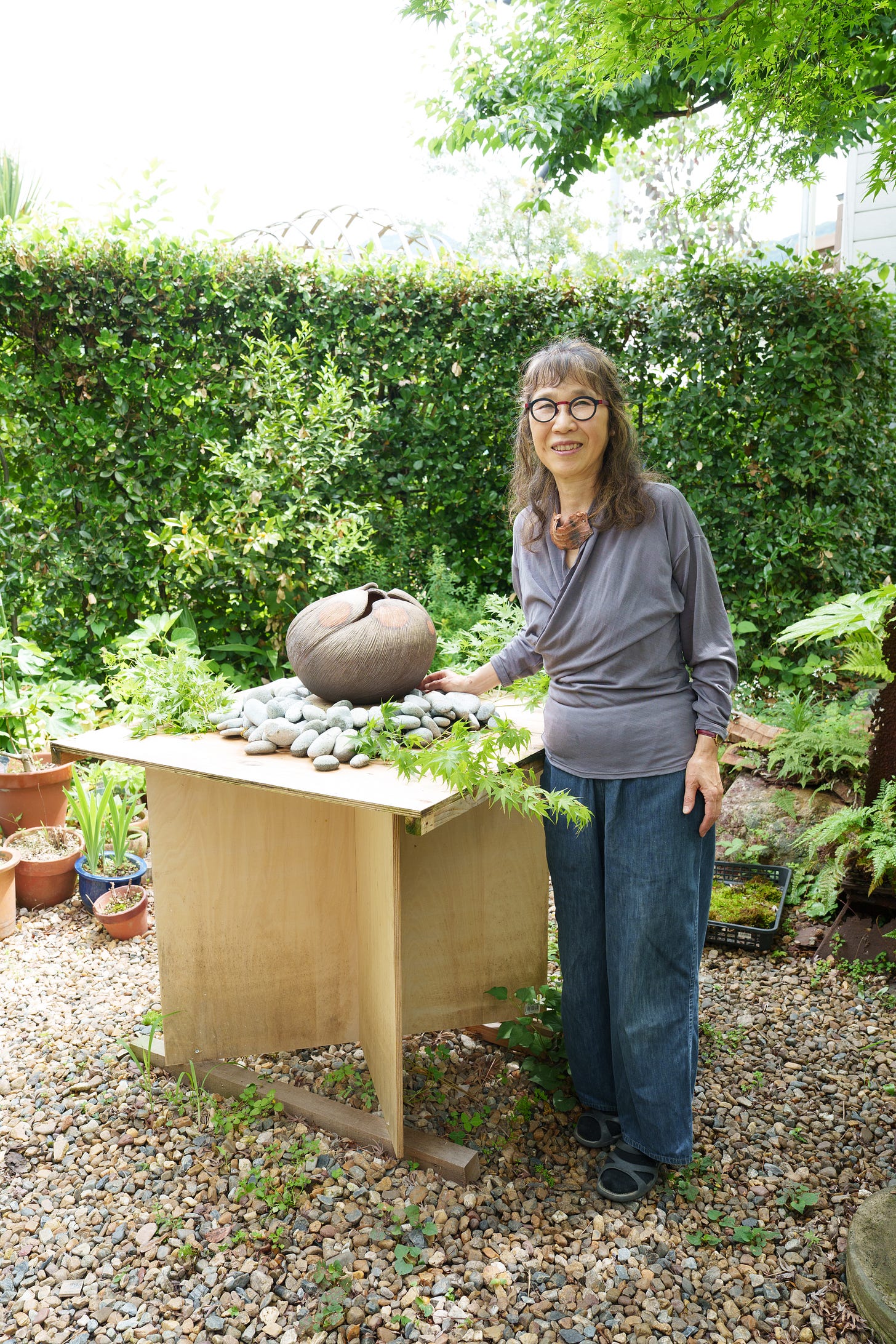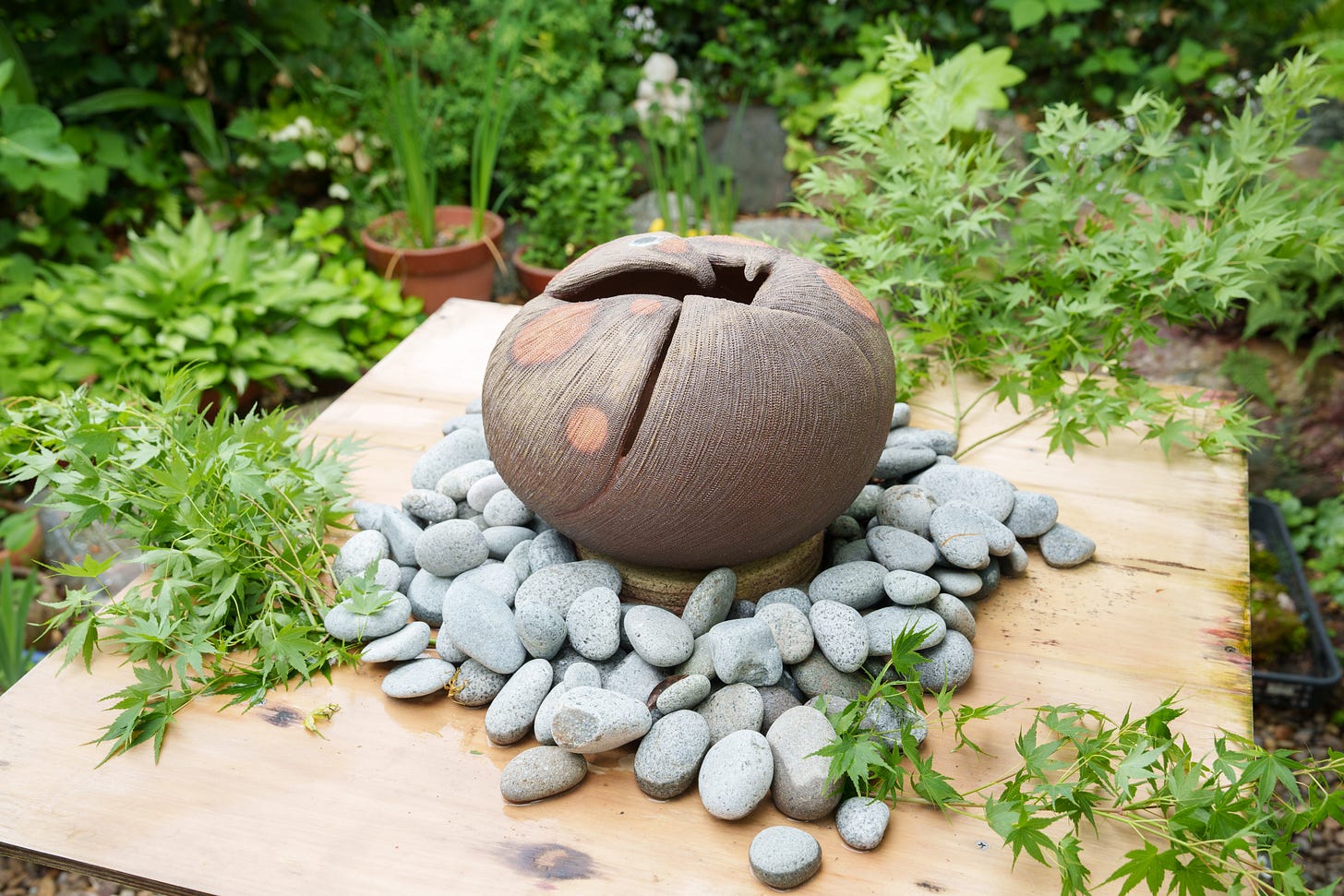 Today, she works at a studio, a two-story wooden structure, adjacent to her home in the outskirts of Kyoto, which she shares with her landscape architect husband Marc Peter Keane, whose magical gardens are found in temples and private homes. The life story of this creative couple has been enhanced by their lives, integrating East and West. Born and raised in New York City, Keane moved to Kyoto in the 80s, after graduating from Cornell, and began practicing landscape design. The two moved to New York when he was invited to teach at Cornell University, and ended up spending nearly two decades in Ithaca. They have recently moved back to their home in Kyoto. With its large windows overlooking the couple’s beautiful garden, the atmosphere is peaceful and harmonious, a magnificent place of inspiration, close to nature and filled with natural light.