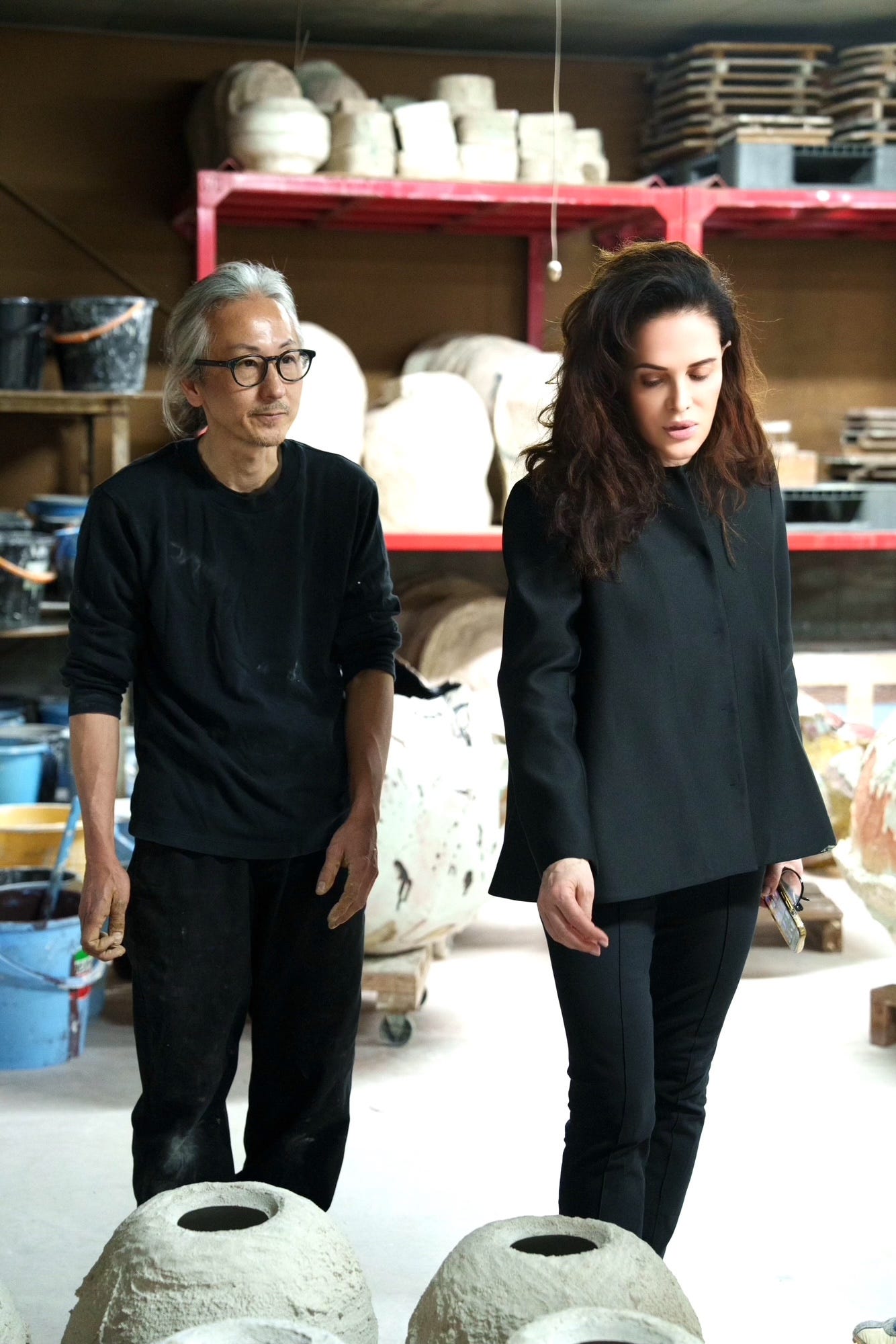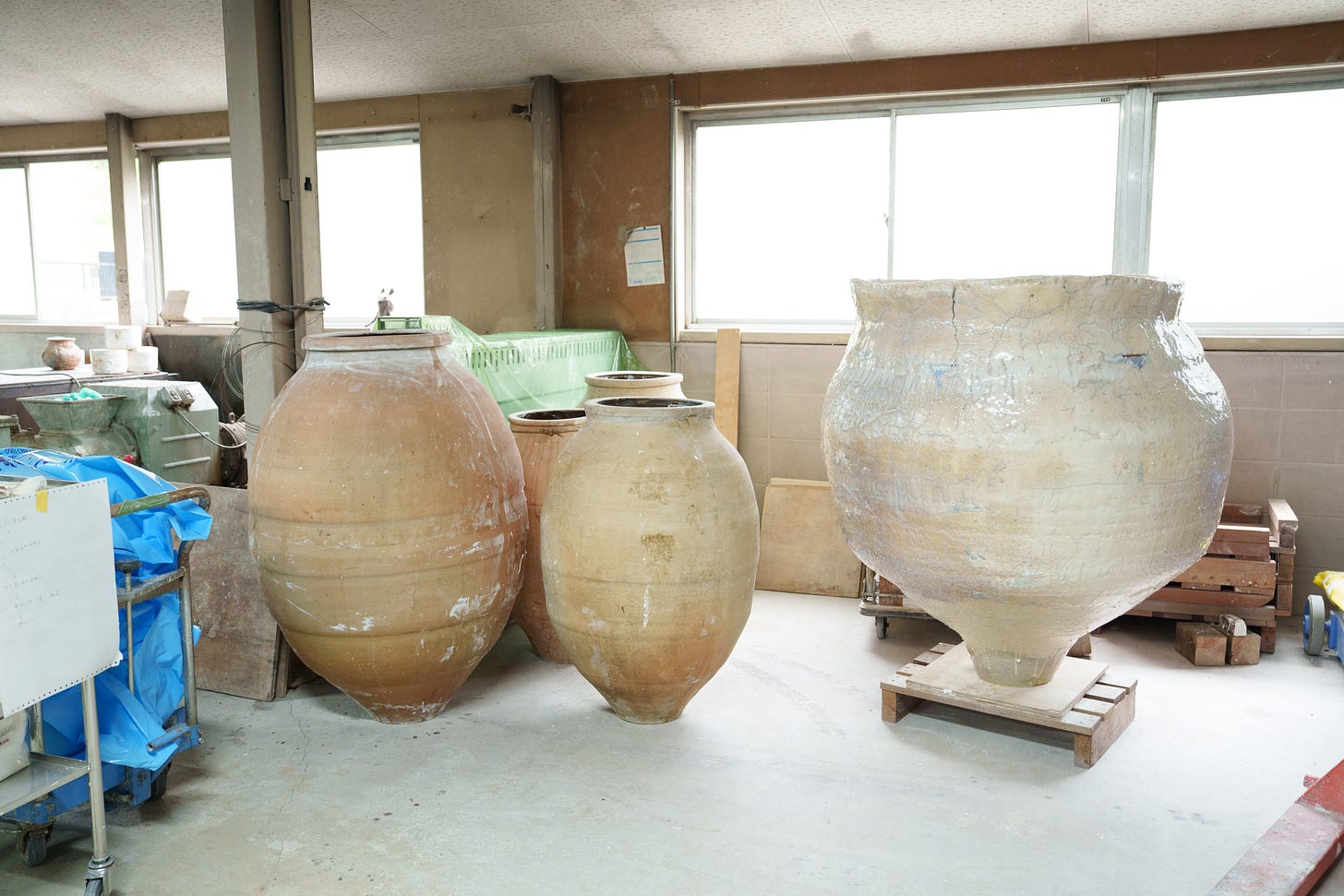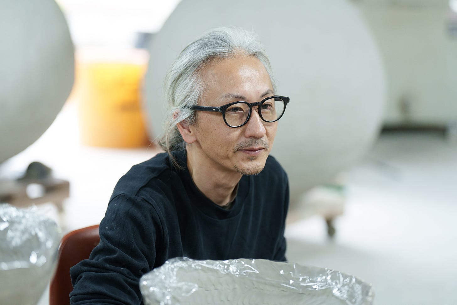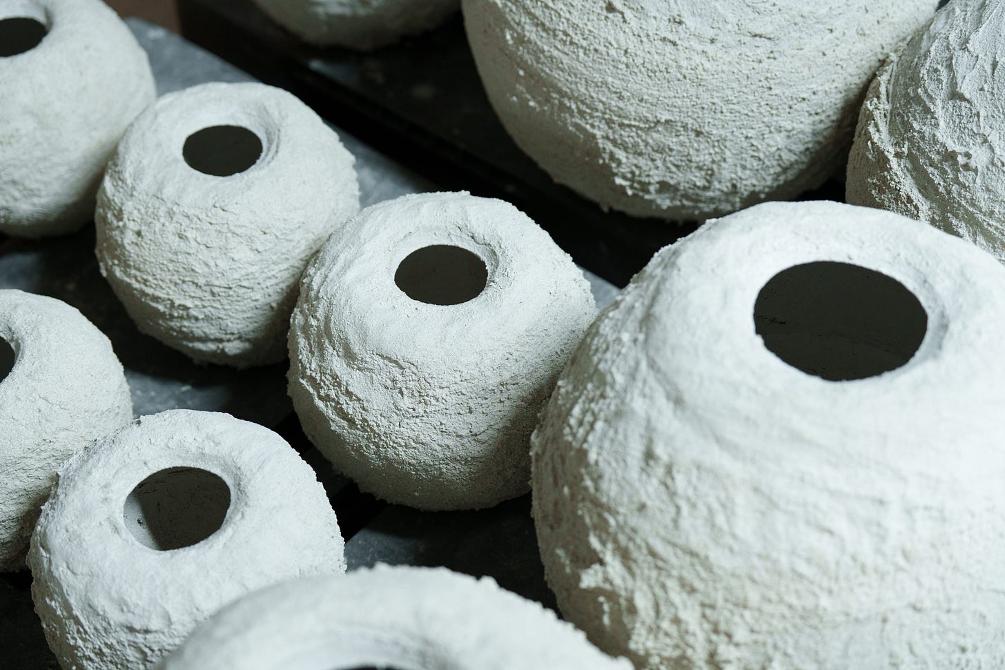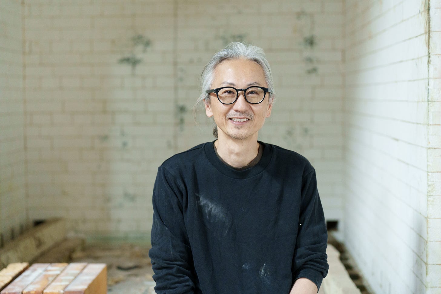 Yuji Ueda was born and raised in Shigaraki, one of Japan’s historic cradles of pottery, known for its local stoneware and climbing kilns, classified as one of Japan’s six ancient centers for pottery. His parents owned a tea farm, and growing up between tea and clay, the two premier local industries, shaped Ueda’s desire to become a ceramic artist. The region is known for the production of distinctive clay figurines in the form of a comical raccoon dog, used in Japan as lucky charms, and attracting tourists to the area. As we drove toward Ueda’s studio, we passed by thousands of them on display in storefronts, in warehouses, and gardens, along the narrow roads; Udea’s work could not have been more different from the ostentatious folklore figurines of his birthplace.