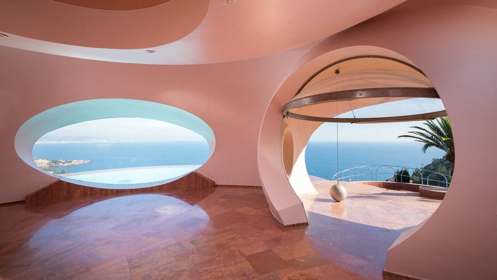 An exciting, yet largely ignored moment in the history of architecture. In concluding the series on the iconic homes of the 20th century, which I have been teaching in Tel Aviv this month, I have devoted the last session to the 70s, including Antti Lovag’s famed Maison Bernard. The ambitious and enormous residence, also known as Palais Bulles, or “Bubble Palace,” it was initially built by French industrialist Pierre Bernard in Théoule-sur-Mer, near Cannes, France, and has been owned by Pierre Cardin since 1992. It is the most substantial example of the organic architecture, developed in South of France in the 60s by a generation of radical architects seeking to craft new type of living spaces designed in biomorphic, free forms. This mode, practiced by such architects as Pascal Häusermann, Jacques Couëlle, and Jean-Louis Chaneác, was resulted in some fascinating residential projects. When creating Palais Bulles, Hungarian-born Lovag had experimented with sculptural approach, combining new building technologies with a local lifestyle. The technique employed was based on bubble shapes, formed of steel rod structures covered by layers of sprayed and brightly painted concrete, consisted of spaces merging into each other, forming a new way of living. The interior was highlighted by different colors, reflecting the sensuality of South France’s landscape. Today, the house is managed by the Maison Bernard Endowment Fund.