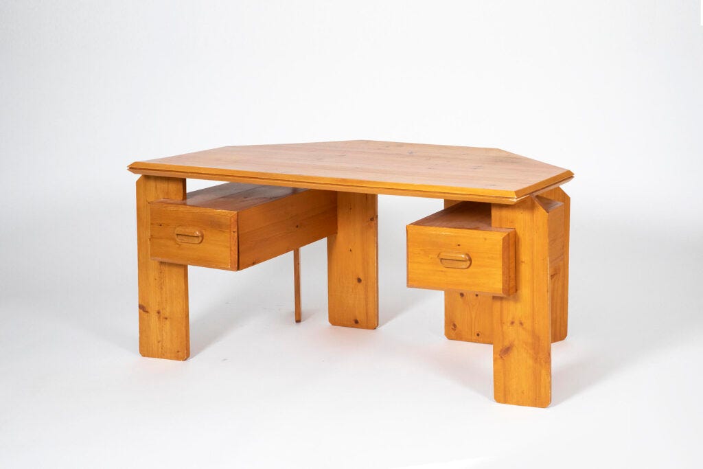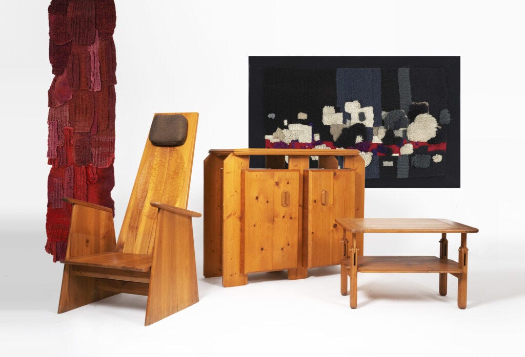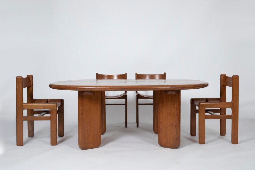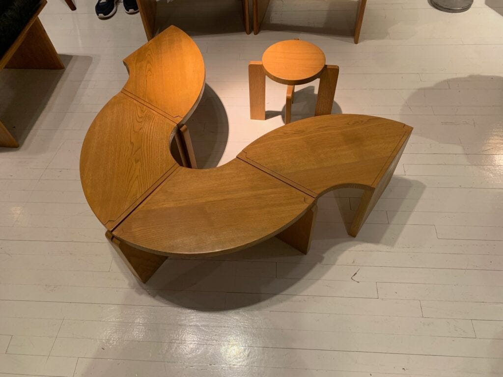 Aside from the beauty of these pieces, crafted in wood, they reflect the essence of French taste. What I found mostly intriguing was the curatorial theme that illuminates the presence of Postmodernism in France. Forget what you thought you knew about Italian and American quintessential postmodernist design, about the bold patterns, the vibrant colors, the plastic, kitsch, and intensity. The French architects featured in this exhibition embraced traditional craftsmanship, refusing reductive modernism. Instead, they designed furniture in organic, soft forms, with respect to the natural property of the materials.