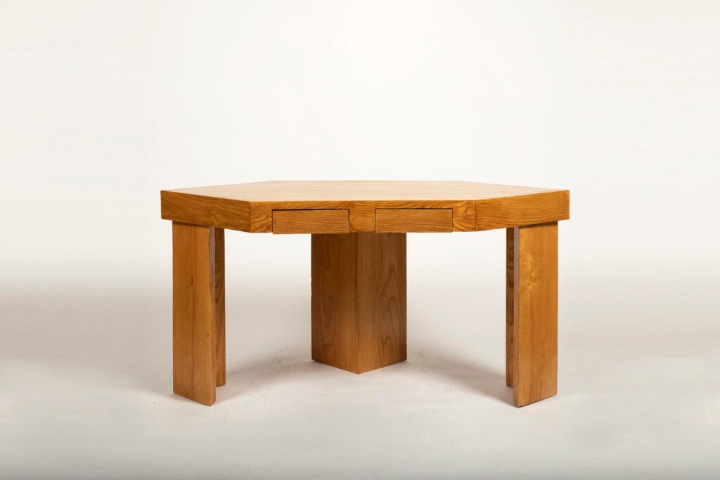 As a whole, the show tells the story of the preservation of craftsmanship in France, as practiced in sharp, smart, sophisticated functional objects. Another objective of the show is to announce the Gallery’s fall solo exhibition of architect Hervé Baley’s original built work, who studied at the free workshops at the École des Beaux-Arts in the 50s, and who was largely influenced by Le Corbusier and Frank Lloyd Wright, creating the most spectacular cubistic furniture in plywood and who will be the subject of a monograph published this fall. When you visit the show, do not miss his cubist chair, the show’s final work.