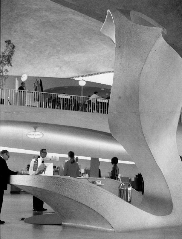 Let’s celebrate 117th birthday for Eero Saarinen, the American architect who was born on August 20th, 1910, on the 37th birthday of his father Eliel Saarinen, Cranbrook Academy of Art’s director. Saarinen was the prince of the American design world during the postwar years, and when he died at the age of 51, America was mourning its stararchitect whose sensational TWA Terminal had just been completed (below). A graduate from the Yale School of Architecture, Saarinen moved back to his hometown Michigan upon graduation, to teach at Cranbrook and to practice architecture with his father. It was in Cranbrook, at the time, America’s most celebrated design academy, that Saarinen met Charles Eames and the two quickly became great friends and forged a partnership that came to shape American mid-century design. Together they designed the groundbreaking collection of molded plywood chairs for the MoMA-sponsored 1940 Organic Design in Home Furnishings competition, and together they designed the influential Case Study House #8, home of Ray and Charles Eames in Pacific Pallisades. In 1953, he married his second wife, art critic and TV host Aline Bernstein Louchheim, and the two named their only son Eames, after his best friend. During Saarinen’s relatively short career, he was responsible for some of America’s most iconic buildings and objects, including the Womb Chair, which he designed for Knoll in 1947; the Tulip Chair and Tulip Table, still a key components of the American kitchen; the Jefferson National Expansion Memorial, St. Louis; Gateway Arch in St. Louis; the Noyes dormitory at Vassar; Hill College House at the University of Pennsylvania; the gorgeous MIT Chapel; the University of Chicago Law School building and grounds; the Miller House in Columbus Indiana (above), and more. He served on the jury for the Sydney Opera House commission and was crucial in the selection of the now internationally known design by Jørn Utzon. Lets remember Eero Saarinen and his legacy on his 117th birthday.