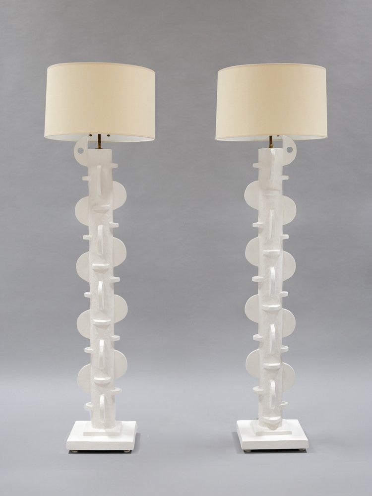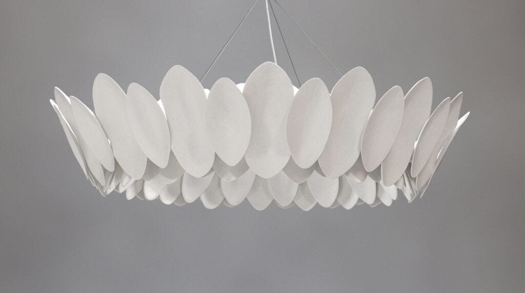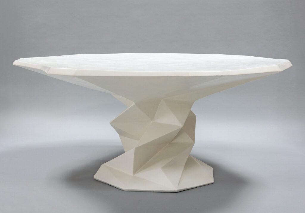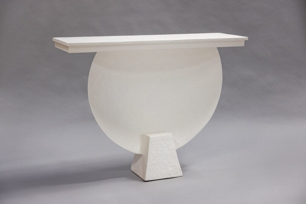 His lighting and furniture are artisanal and sculptural, exemplifying the intersection between craft, art, and design while bringing fresh whiteness into interior spaces of those plaster enthusiasts. His forms are born from a passion and knowledge of art and design history, handcrafting his pieces in the most traditional disciplines. He is working within the medium while devising techniques according to the base materials and shape and nature of the pieces. For most sculptors, plaster is an intermediary material, but Antonson treats the matte white medium as his main, contemporary material.