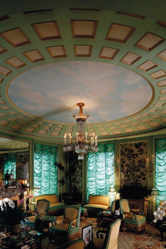 When the Gutfreud’s commissioned Henri Samuel to create the opulence interior, his reputation was at its peak. His signature style, interiors that looked as if they belong to another era, filled with French flavor, antiques mixed with contemporary pieces was influential all over the world, and Samuel was hailed as a legend. He created rich interiors crafted by artisans, and filled with colors, textures. Having worked in restoring the Palace of Versailles, he had made his name as the master of the historical décor and famously decorated the homes of Givenchy, the Rothchilds, Valentino, the Wrightsmans, and Sisley founders Hubert and Isabelle d’Ornan. But Samuel’s maximalist extravagance, his couture interiors have passed from the world.