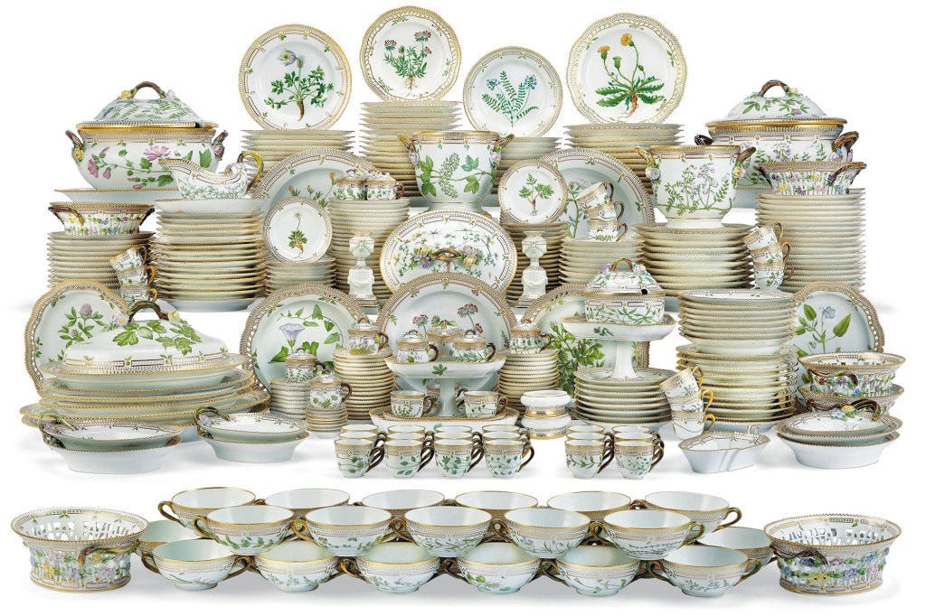 What I find interesting is the collection of 106 pieces of Chanel jewelry in the part of the sale entitled ‘Susan and Karl: Important Chanel Fashion Jewelry.‘ Created for one-time haute-couture runway shows, and gifted by the family’s close friend couturier Karl Lagerfeld, some of the pieces are truly special. I also love the extensive Royal Copenhagen porcelain dinnerware, expected to be the most expensive lot in the auction (above). But the lesson we can learn from this sale is that taste changes and that the notion of ‘timeless’ is super limited.