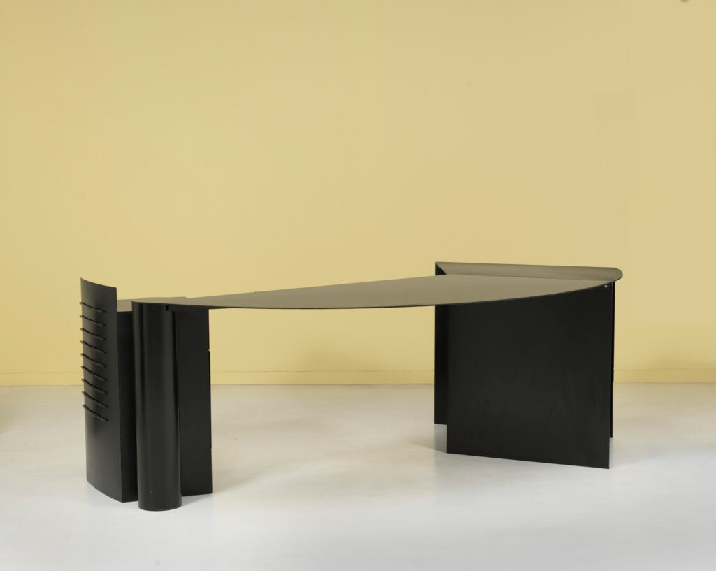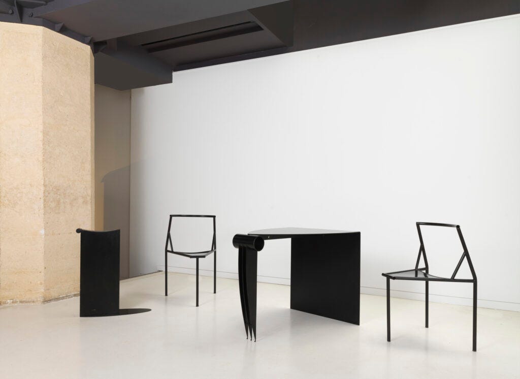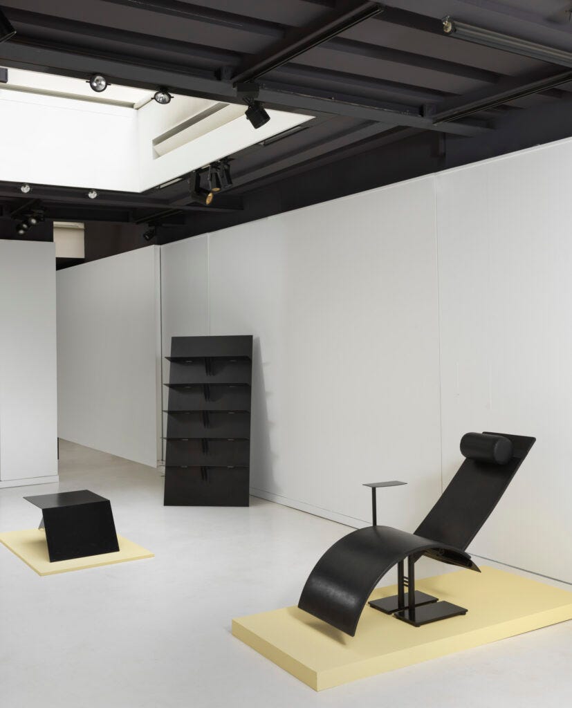 Matthias Jousse has spent years preparing this show and collecting the 30 objects on display, which includes those from the PI collection (1982-1986) and the Containers series—which he created for Néotù gallery in 1987. Items displayed range from the Presse Papier storage, Passif coffee table, Toro chair, and Stoléru sofa, to seats and an ashtray drawn for the Hérouville theater, along with the unique Président desk produced by the French editor Tribu.