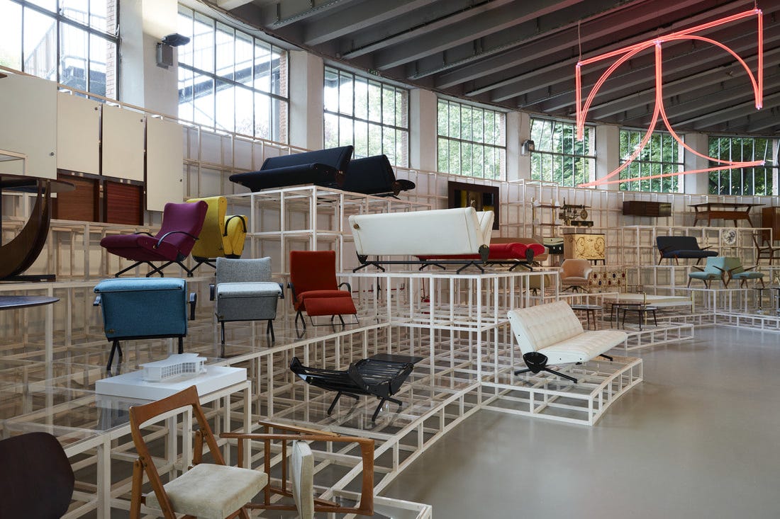 What happens when two talented forces, an admiring starchitect and a devoted grandson come together to rediscover and resurface an enormous design talent whose history has somewhat ignored? The result is the remarkable retrospective of Italian architect/designer Osvaldo Borsani at the Triennale Design Museum in Milan, co-curated by his grandson, architect Tommaso Fantoni and by Sir Norman Foster, a remarkable exhibition in many different ways, and one of the best to see in Milan these days. I am not surprised that Foster, who had met Borsani before his death when creating the famed ‘Nomos’ Table for Tecno, the company Borsani founded in the 50s (below) is a fan; when you see the exhibition, you think of such visionaries who have found ways to break away from history and to merge architecture, design, and technology, as Buckminster Fuller, whom Foster considers his mentor. Borsani was an architect who knew design, business, and the business of design. His career, we learn from the exhibition, was composed of two chapters, with the first beginning in 1925, and the second, when founding Tecno, a career that had come to illustrate the story of Italian design in its formative years. His father started a furniture atelier, which Borsani had transformed into a global brand, and now, that Fantoni, who seeks to preserve the family’s history, and Foster, who aims to bring the legacy of Borsani to the public, have curated this monographic exhibition, his place in the pantheon of Italian design is secured. Forever. What makes this exhibition successful, an educating, joyful experience? The design of the show is based on a monumental and architectural cubic display system, in the spirit of Sol LeWitt. While this unusual installation doesnt come through in photos, in person, it creates a strong sense of timeline that makes the stunning evolution of Borsani’s career easy and clear to understand. I found the discovery of the talent of Borsani reviving and exciting, definitely a genius of Italian Design. He was able to move away from the craftsmanship of Italian futurism, into machine age and speed, and finally into industrial design, taking part in turning Italian industry into a substantial international force, in the most flowing, natural way, while demonstrating the power of flexibility and intellect to achieve success in the architecture/design world. All images courtesy of Triennale Design Museum Milan.
