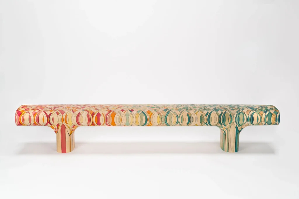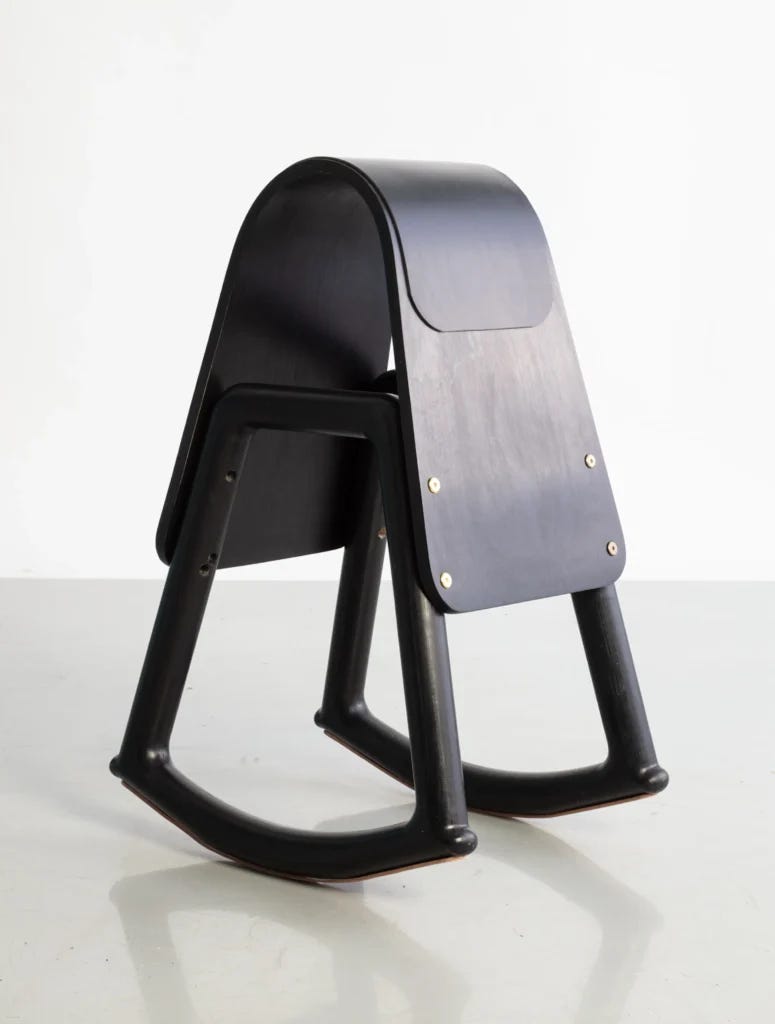 Of Chicago-based Norman Teague (b. 1968), Delphia told us that he is not only a talented designer-maker but also an inspiring educator and community builder who supports emerging BIPOC talents while telling the stories of Black communities rooted in Chicago’s South Side neighborhoods. As a cofounder of blkHaUs Studios, he is committed to using design as an agent of change to uplift and transform those who have been systematically marginalized and disenfranchised. Delphia recently acquired Teague’s Sinmi Stool for the Carnegie Museum. Named for the Yoruba word for “relax” and handcrafted in leather and wood, the design explores the visual language of the African diaspora while inviting users to lean rather than sit.
