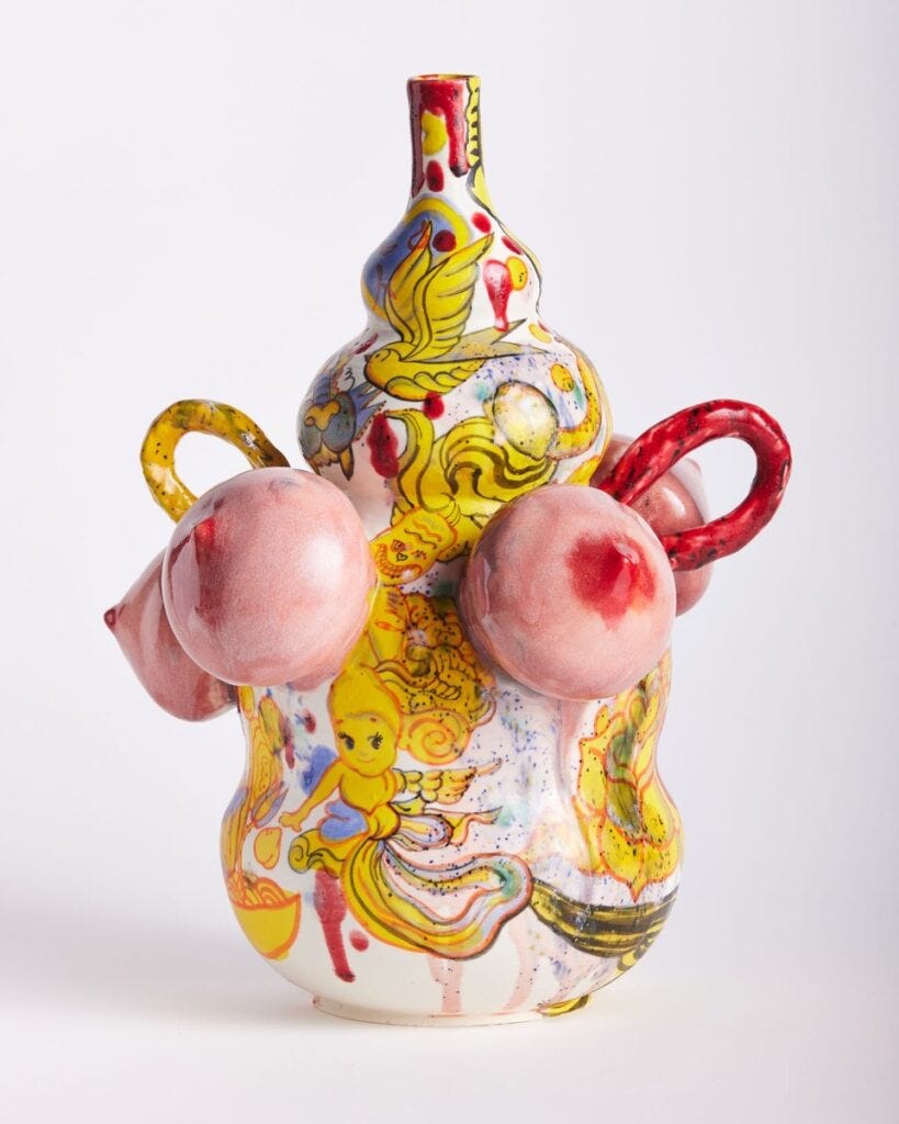 Of Jiha Moon (b. 1973), Delphia said that the Korean-born, Atlanta-based ceramicist uses clay as medium to represent the complex experiences of the Asian diaspora in the 21st century. Shaped by a distinct relationship between craft and content, Moon’s colorful and playful oeuvre synthesizes a remarkable array of cross-cultural allusions that span popular and folk iconography from the US, China, and Korea, both contemporary and historical.