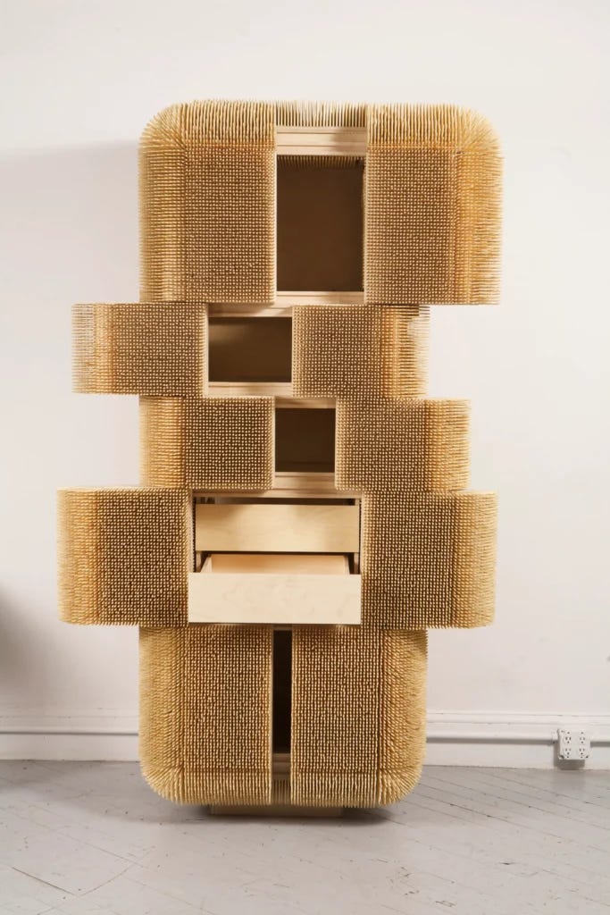 To hone her ability to identify the “antiques of the future,” Delphia is constantly engaged with the contemporary design world, especially by frequenting galleries, fairs, and studios to see the latest works in person. In contrast to historical design production, the “museum quality” designs of the 21st century tend to be handmade and imbued with personal and political narratives. Museums that collected design in the modernist era, such as MoMA, the MET, and the V&A, concentrated on mass-manufactured works sourced from industrial-scale brands. Today, the cutting-edge role once played by manufacturers is being supplanted by smaller scale productions. As a result, Delphia’s acquisitions tend to be sourced from galleries. Every museum, Delphia noted, shapes its permanent collections according to its unique mission statement. For the Carnegie Museum, she goes in depth with the designers she brings into the collection, acquiring multiple works from designers over time to document the evolution and signatures of their oeuvres. She also underscored that the museum has a vital role to play in supporting contemporary creatives.