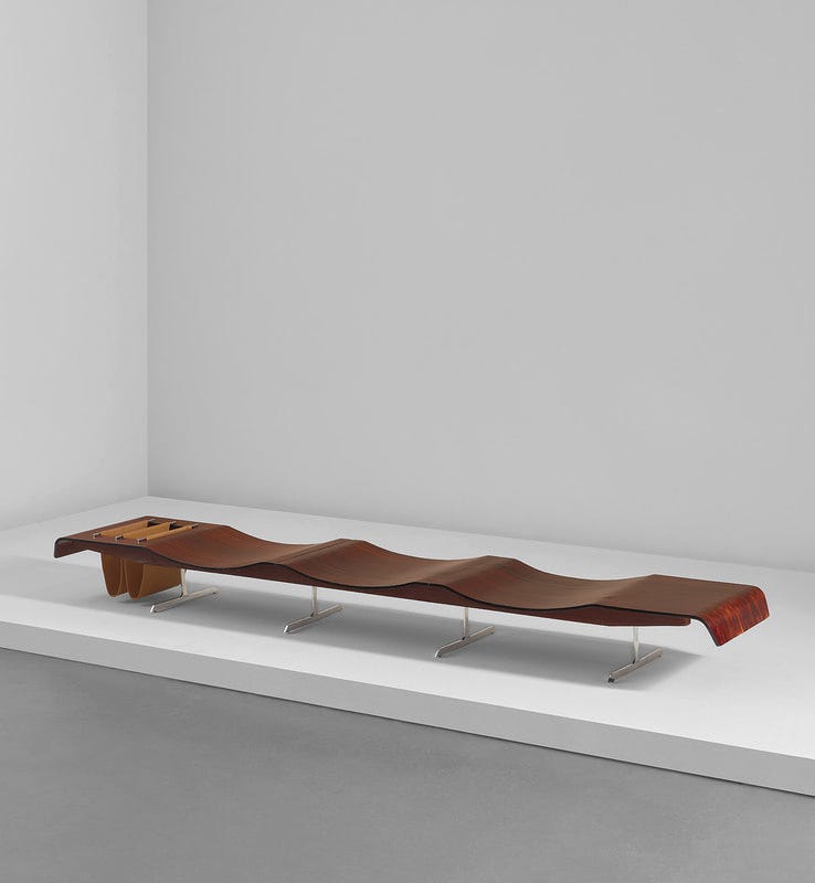 We know that Sergio Rodrigues, who came from a prominent family of Brazilian artists merged local tribal culture with modernity; that Joaquim Tenreiro created exquisitely-crafted furniture of neoclassical sensibility; that Italian architect Lina Bo Bardi was tightly connected to the European Modern Movement; and that Jorge Zalszupin created the most spectacular and unexpected forms, dazzling scales and proportions, succeeded in achieving abstraction and volumes. A fine example of his Banco Onda Bench, which will be offered at Phillips, New York next week, is one of my selects in this design week.